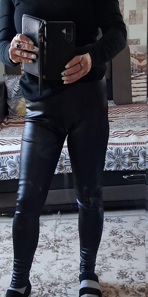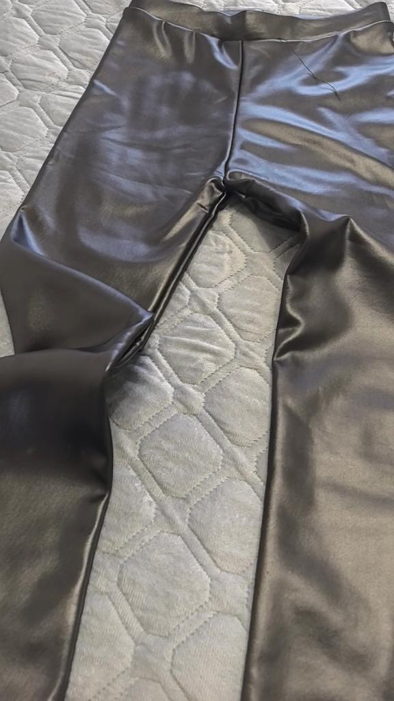 Probably the only good fleece-lined leggings, wide elastic waistband, outer part made of some artificial leather-like material, will probably peel and crack from washing, but overall, the price isn't high, and they look impressive, just right for size 60-62, thank you!