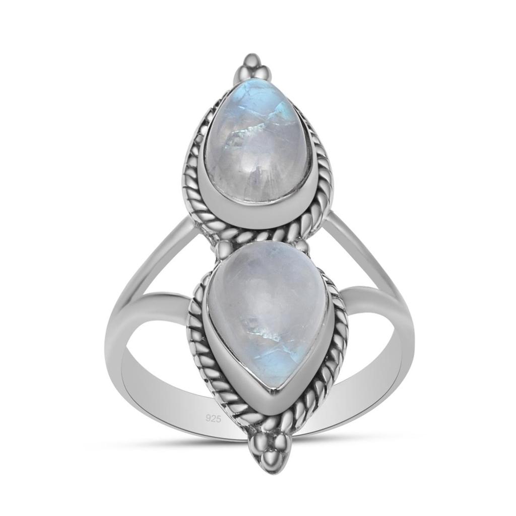 8x10 Mm Natural Rainbow Moonstone Ring 925 Sterling Silver Teardrop Shape Gemstone Handmade Spilt Shank Wedding Ring For Women & Girls