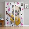 Pug Dog Music Funny Sheer Curtain For Living Room Voile For Window Blinds Bedroom Tulle Drape Kitchen Cortinas Hall Curtains