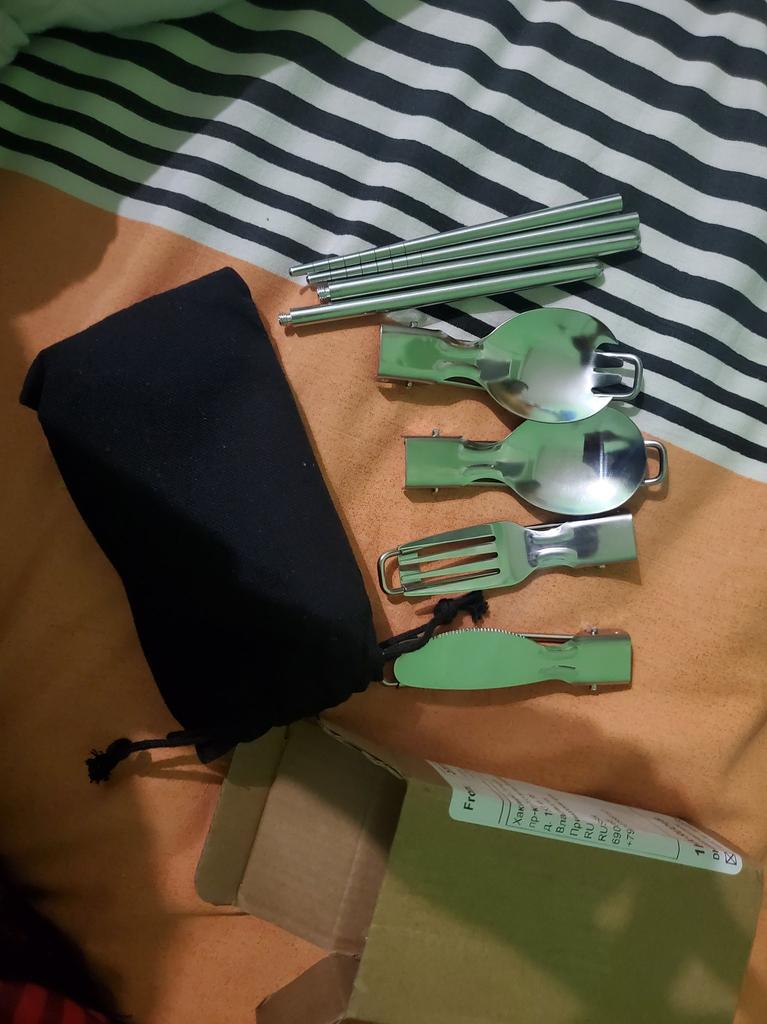 5 PCS Stainless Steel Travel Utensils, Foldable Portable Camping Cutlery Set, Includ Knife Fork Spoon Spork Chopsticks for Picnic, Hiking, School