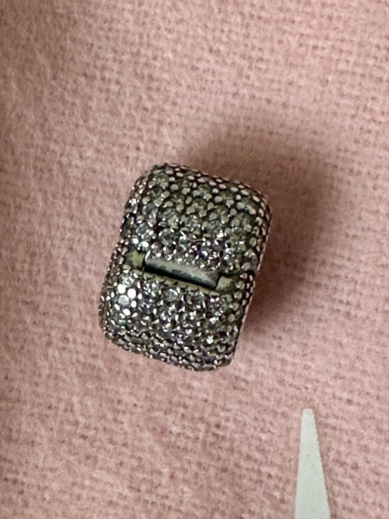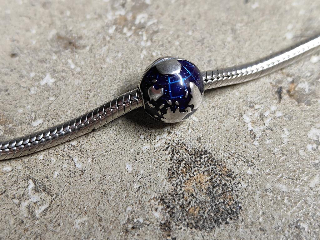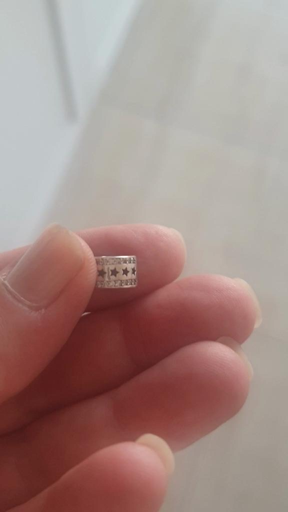 The charm is beautiful and also works as a stopper as described. It can hardly be distinguished from the original with the naked eye. That one is on the left in the photo, the others are originals.