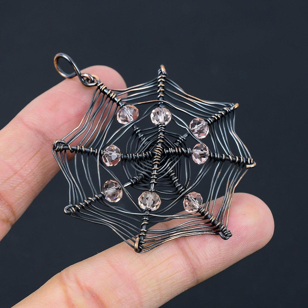 Spider Web Shaped Morganite Gemstone Pure Copper Wire Wrapped Handmade Pendant Jewelry For Gift
