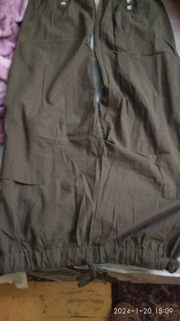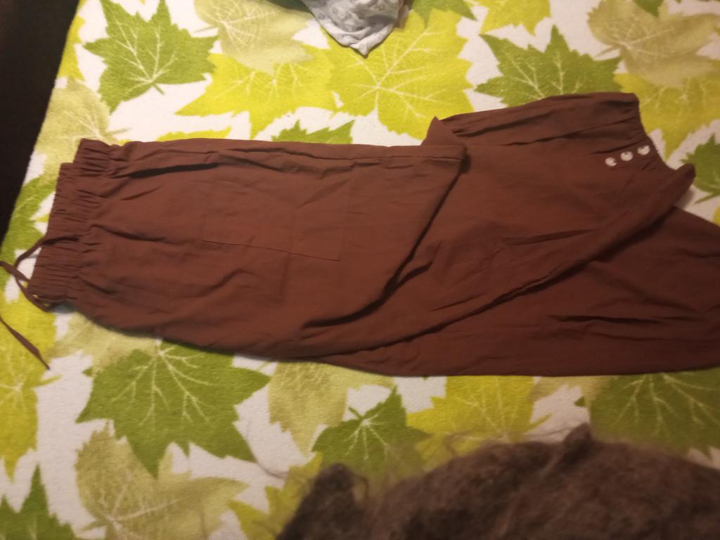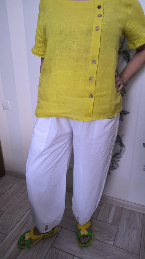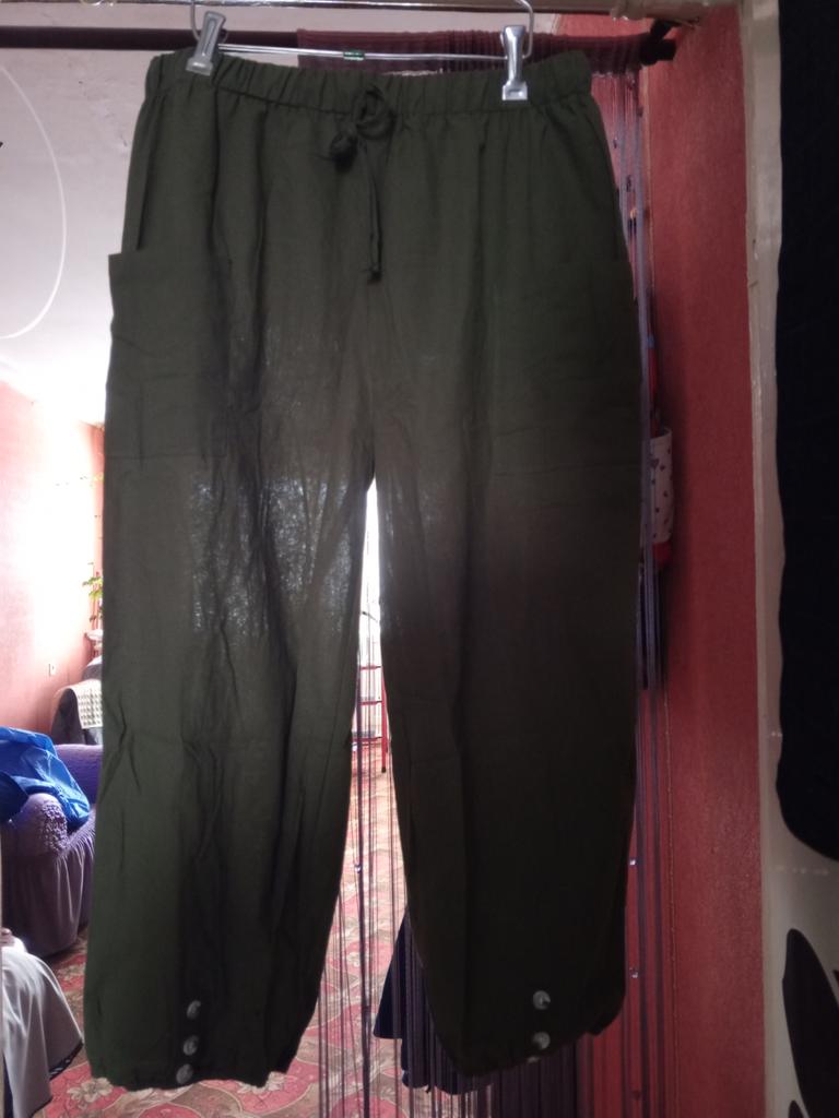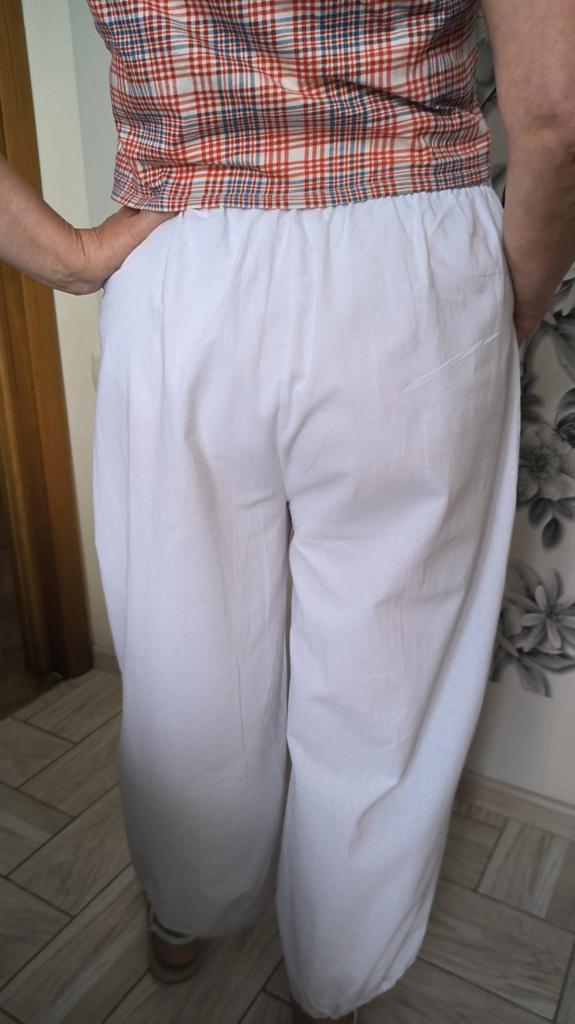 Cotton, loose pants for summer. With the jumper bought on Juma we got a suit