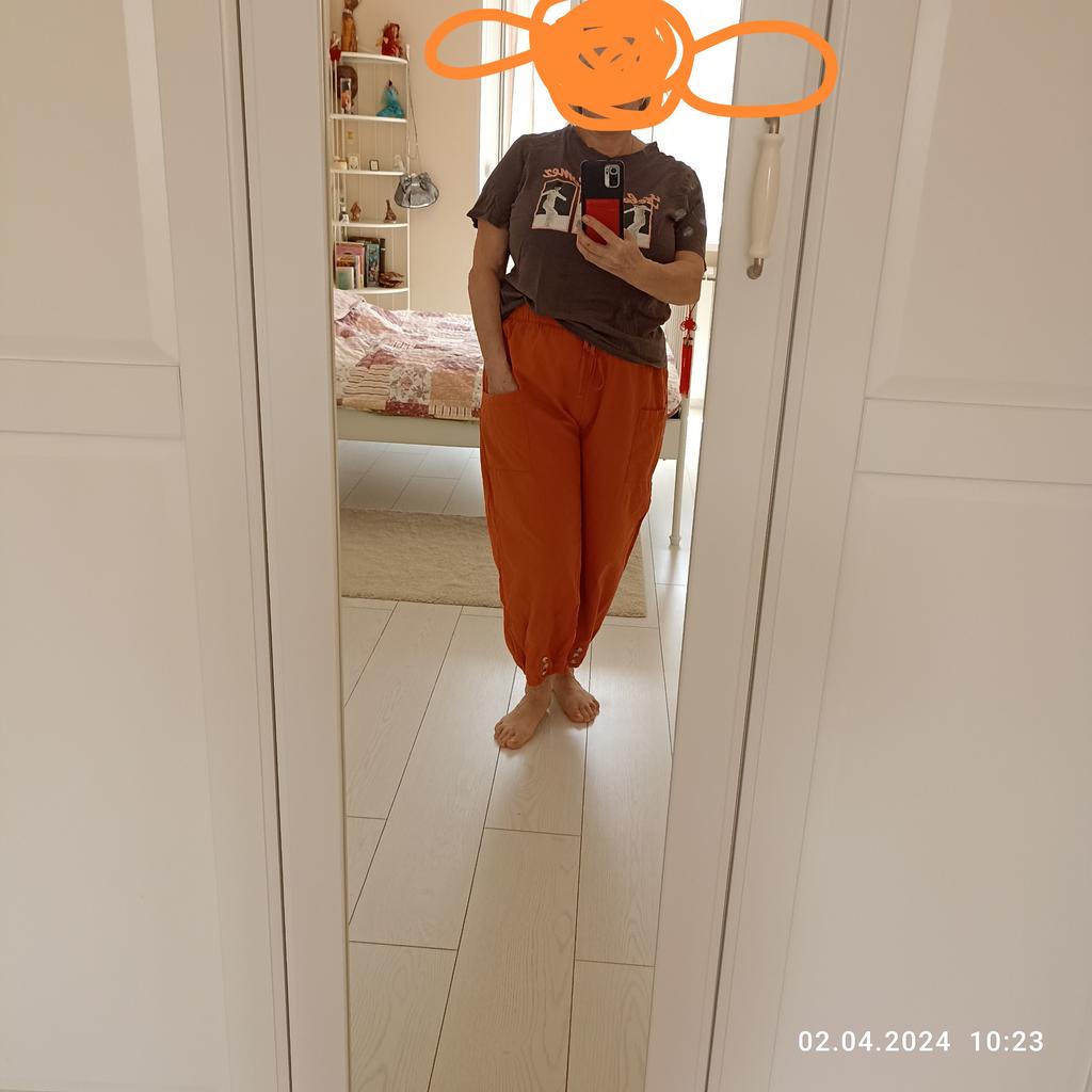 The trousers are size L by 52, but I would like them to be looser, after washing the fabric will still shrink, so I re-ordered them to XL. Sewn neatly, cotton without any synthetic admixture, it will be comfortable to walk in them in the summer. The color matches the photo. The parcel arrived quickly.