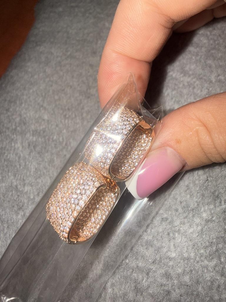 CMM Double Sided Micro Paved Cubic Zirconia Silver Color Cubic Zirconia Rectangle Hoop Earrings for Ladies Jewelry