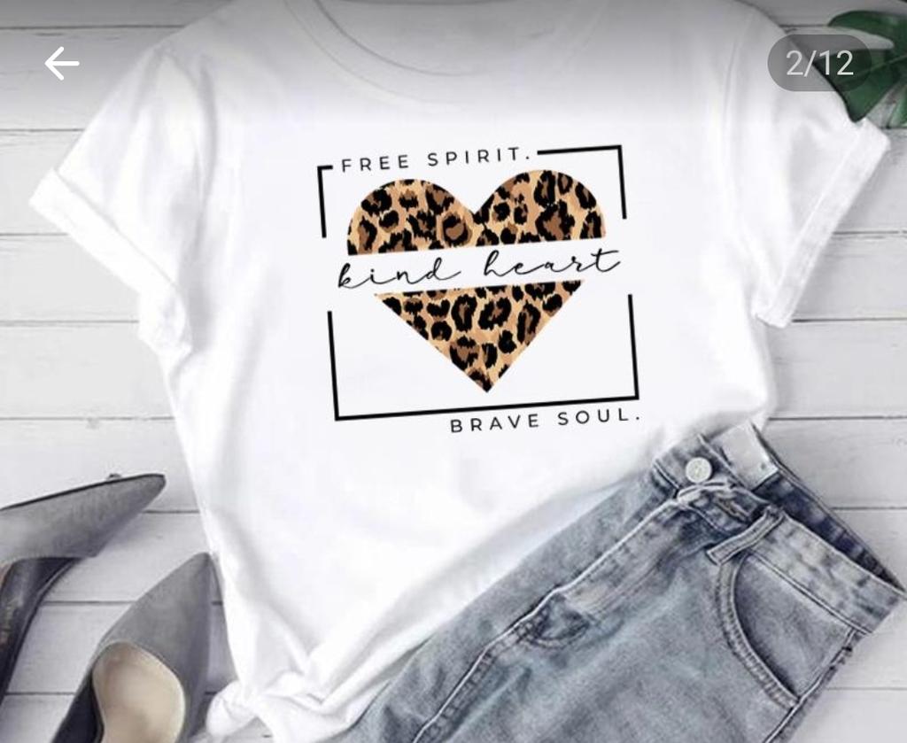 (Asian Size) Women Leopard Love Heart Sweet 90s Fashion T Shirt Woman Female T Clothing Short Sleeve Print Tee Top Graphic T-shirts