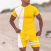 Men Clothes T-shirt Suits Tracksuit Color Block Crew Neck Outdoor Street Short Sleeve 2pcs Apparel Spring and Summer