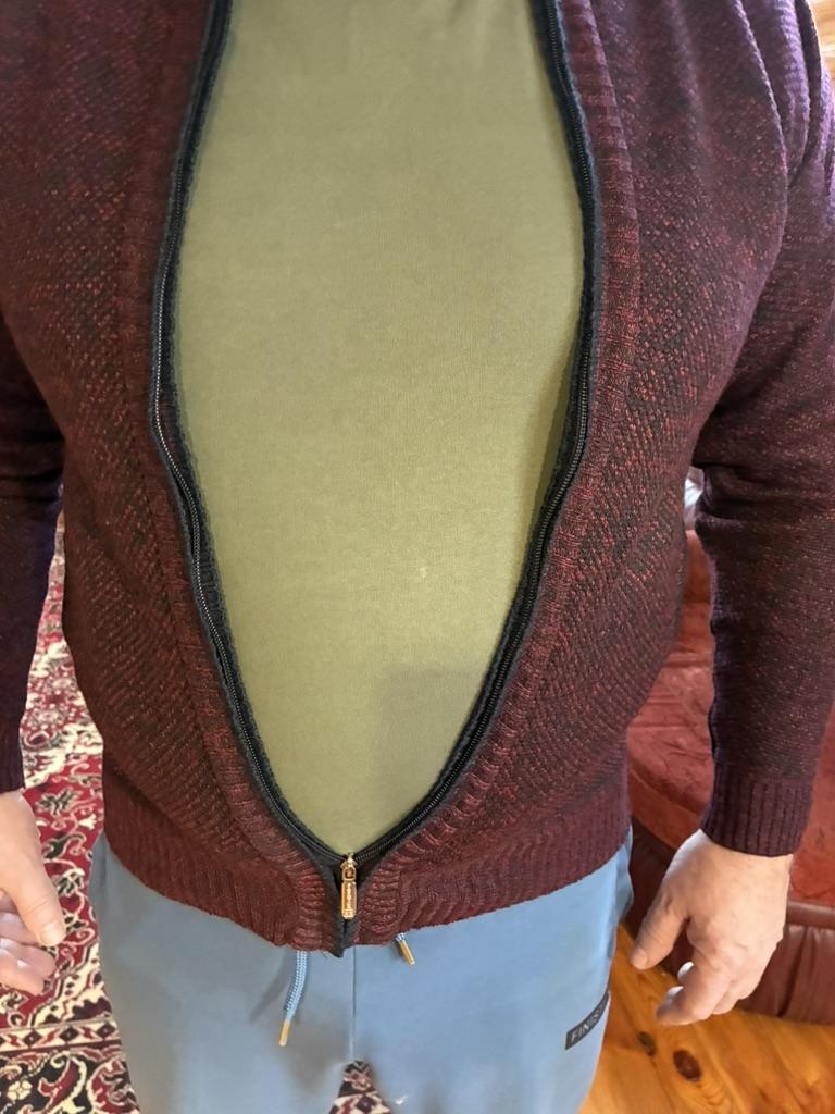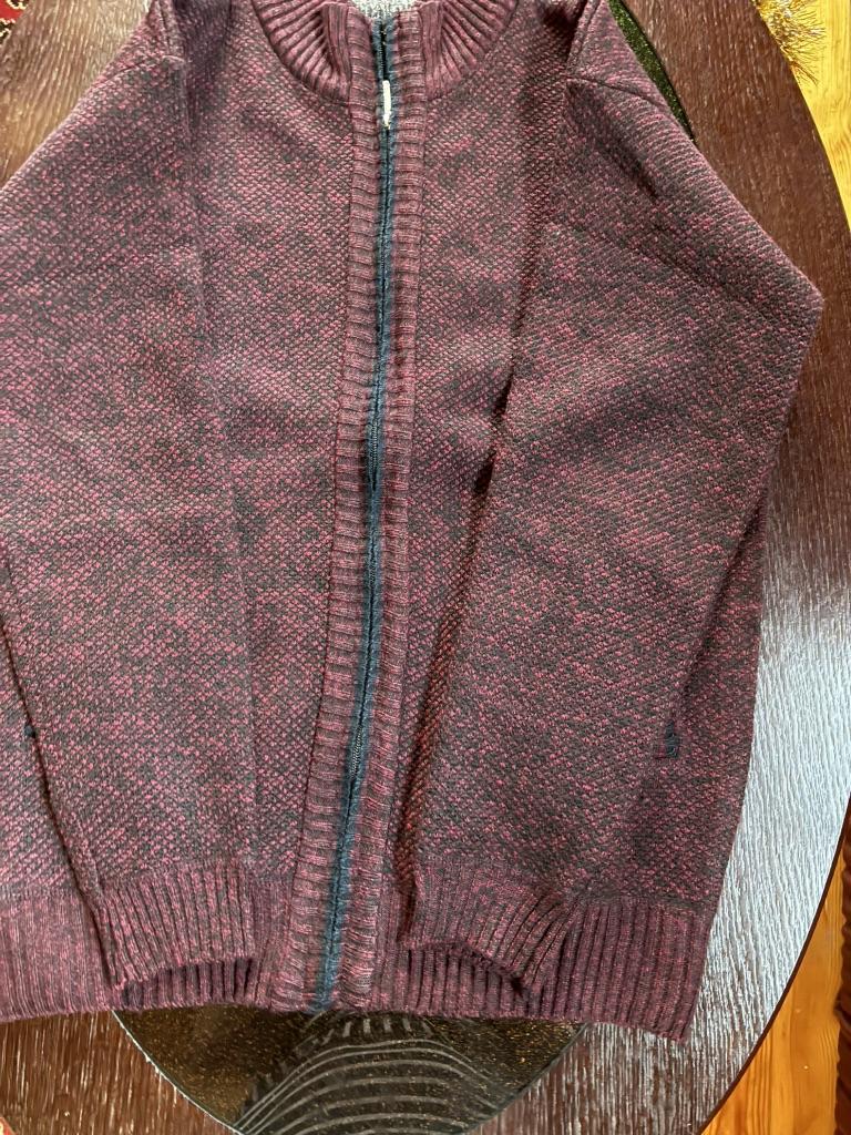 The sweater runs very small. The stated size is XXL, but the actual size is L. The color also does not match the one stated. It was advertised as red, but it arrived as black-burgundy.