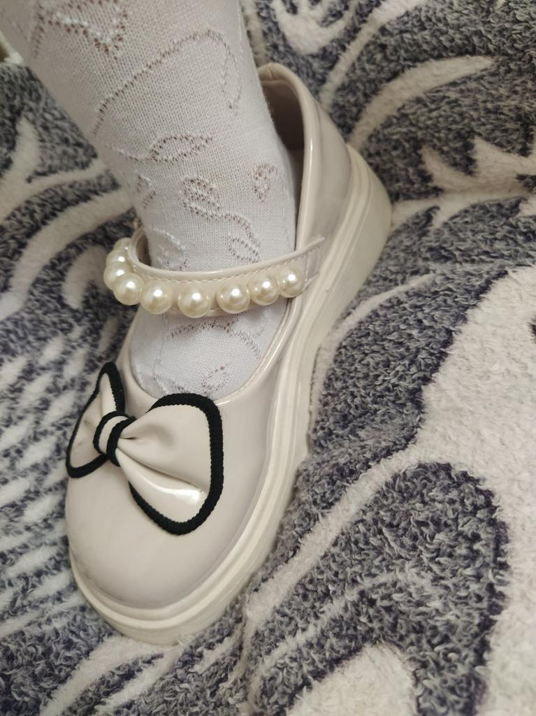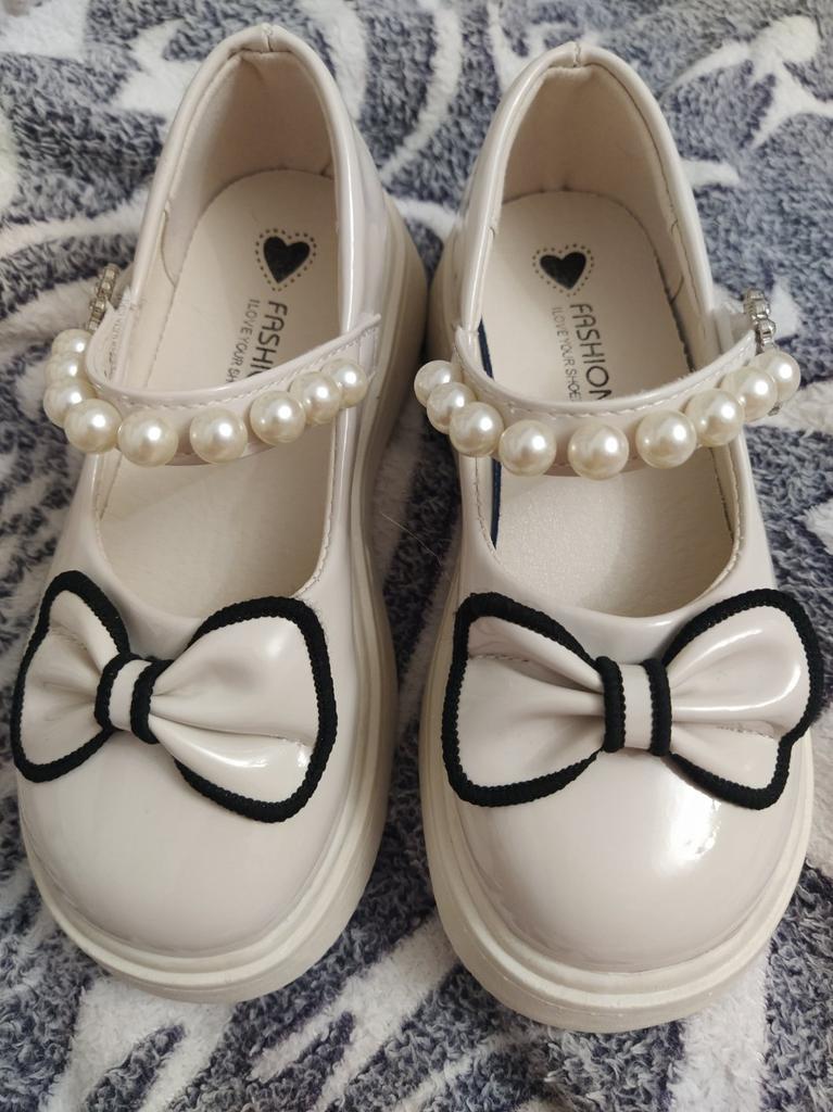 Kids Girls Shoes Pearl Bow Knot PU Leather Princess Shoes Children Girl Soft Bottom Non-Slip Flat Single Shoes Baby Shoe