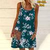 Women Flower Some Beautiful Camellia Printed Mini Dress Sleeveless Party Dress Summer Beach Dress Sundress