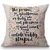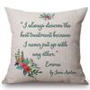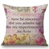 18" Square Floral Jane Austen Quotation Letter Print Sofa Throw Pillow Cover Case Cotton Linen Nordic Masterpiece Cushion Cover