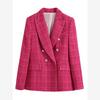 Women's Spring Fashion Casual High Street Double Breasted Tweed Office Blazer Jacket