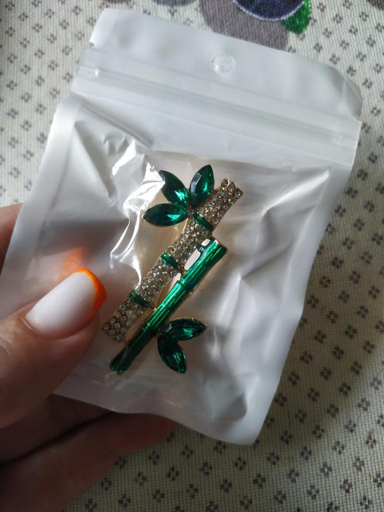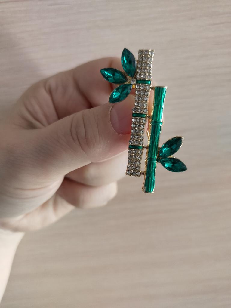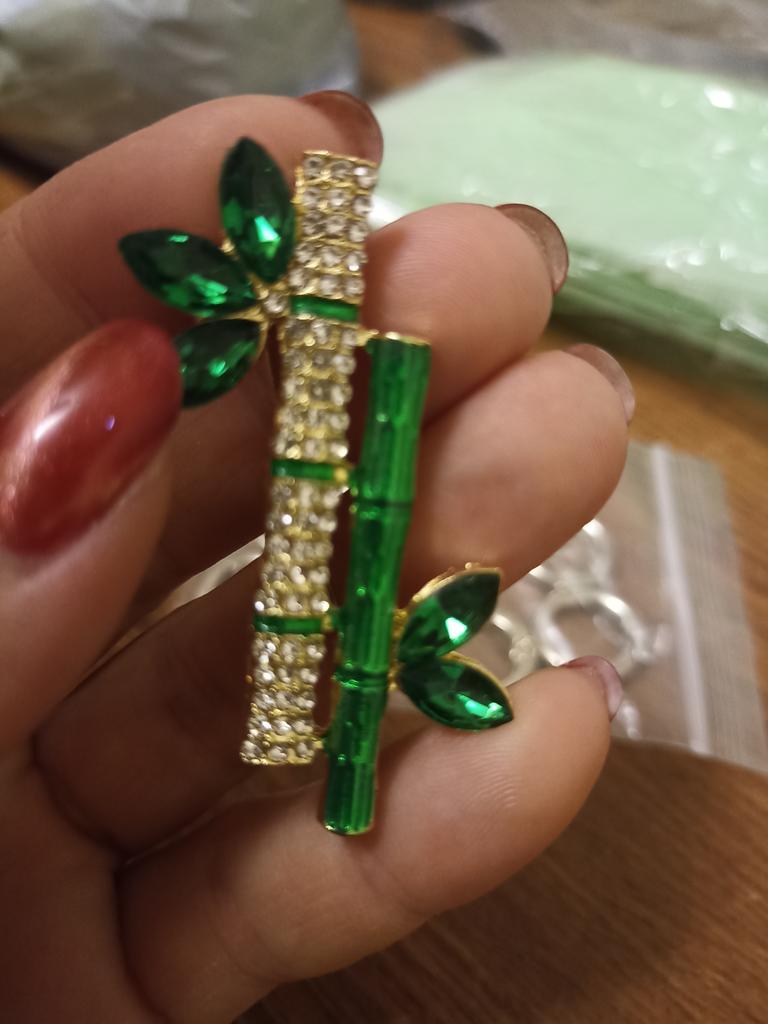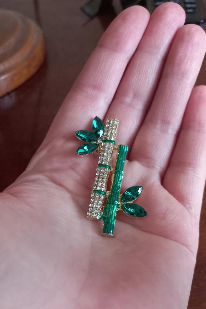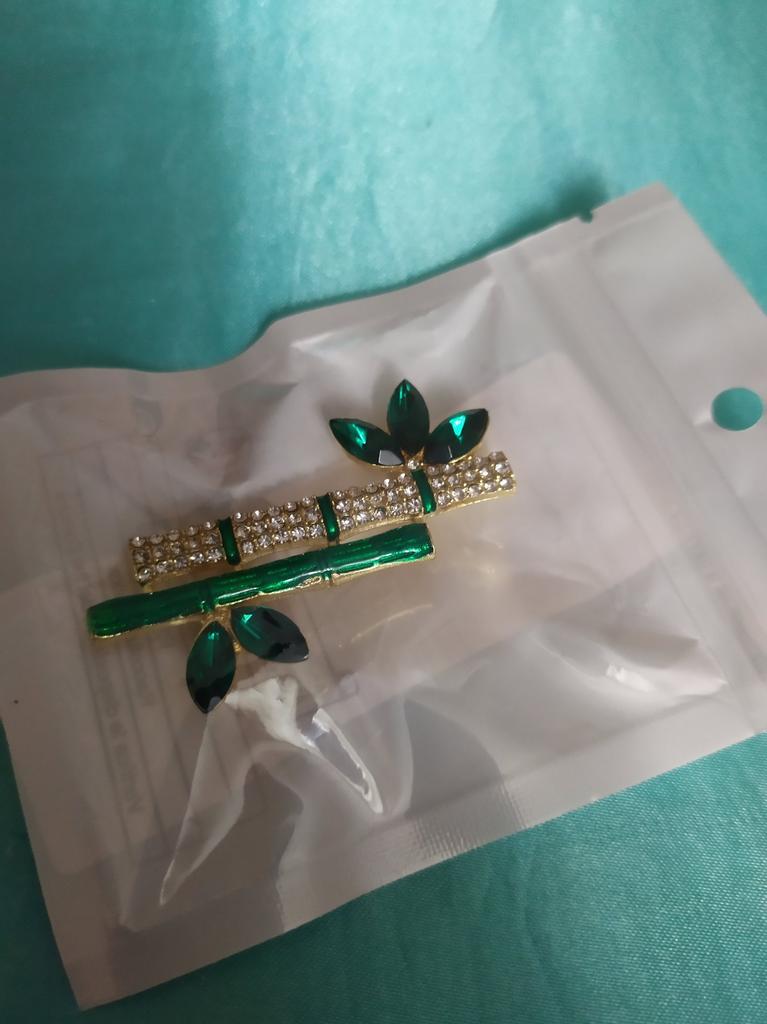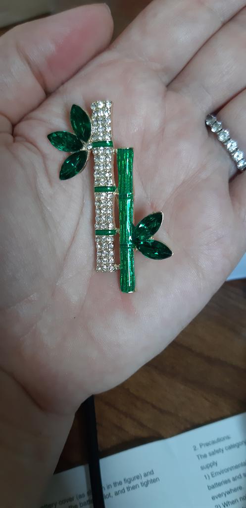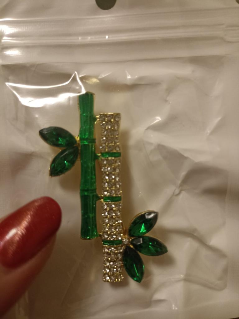 Very cool delicate brooch. Unfortunately, the camera shows a turquoise color, but in reality it is a rich green. Arrived quickly, made with high quality. I recommend