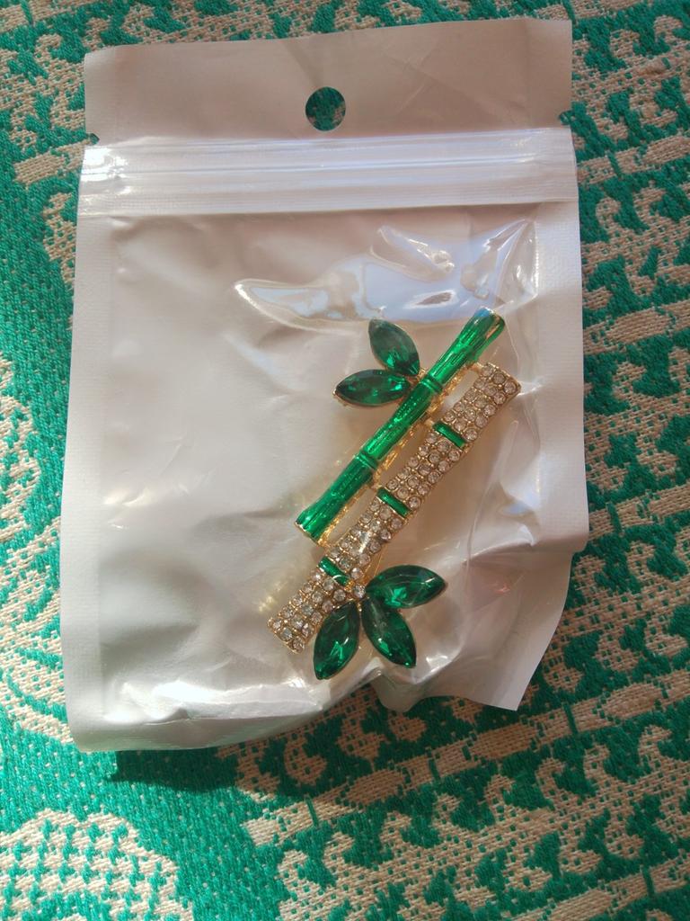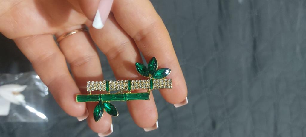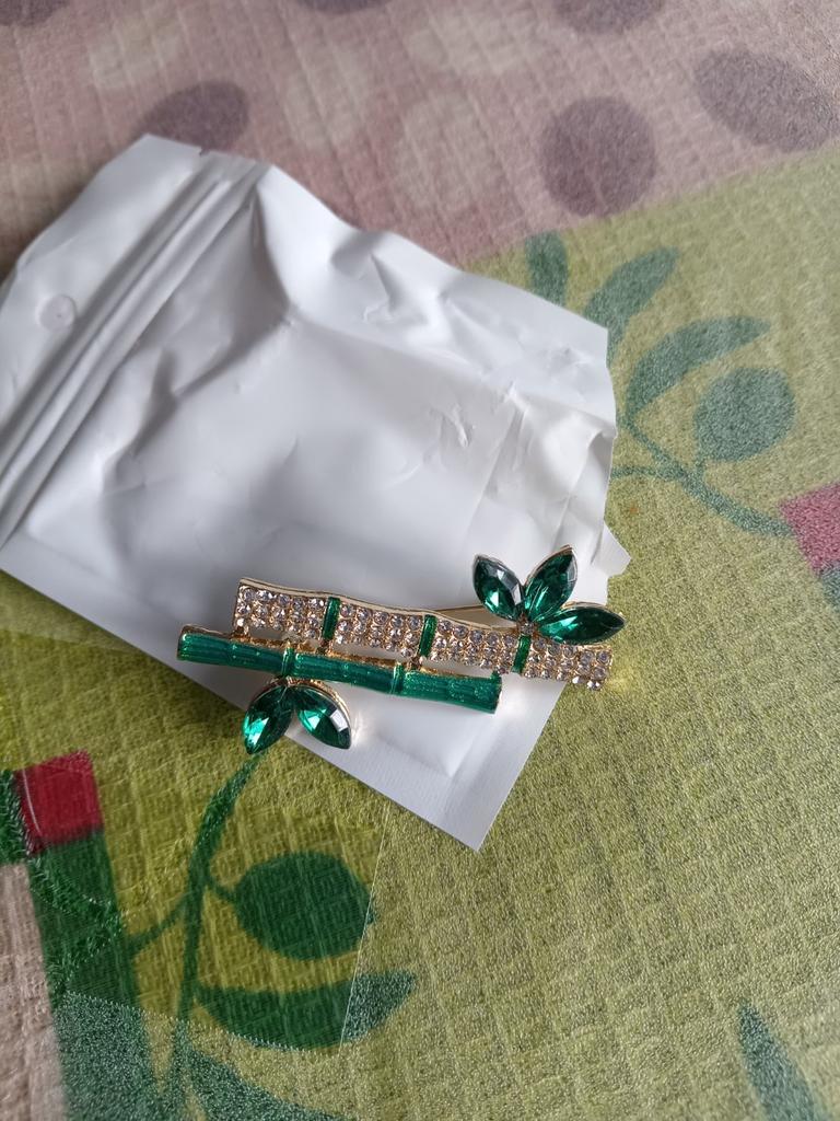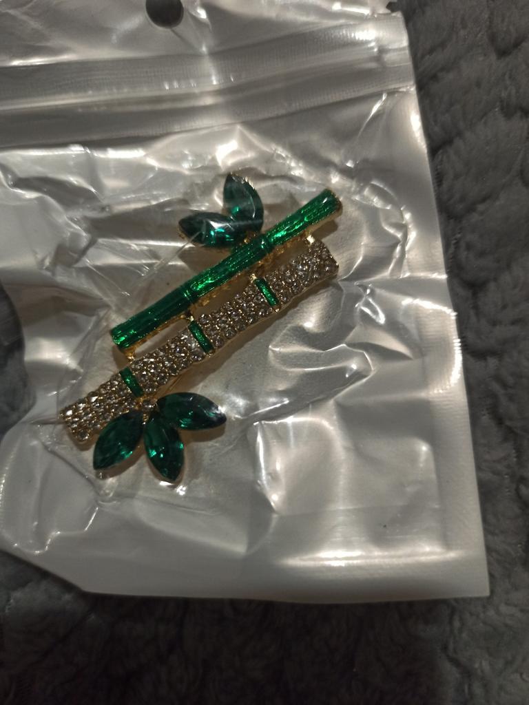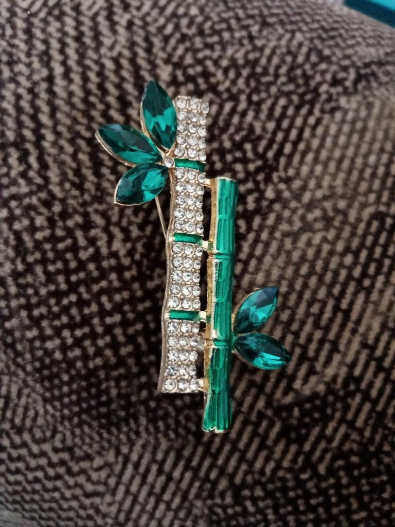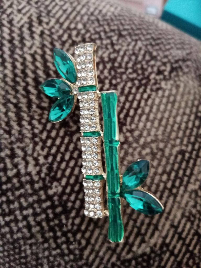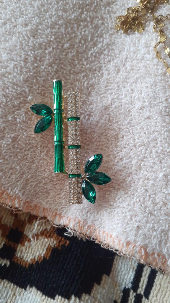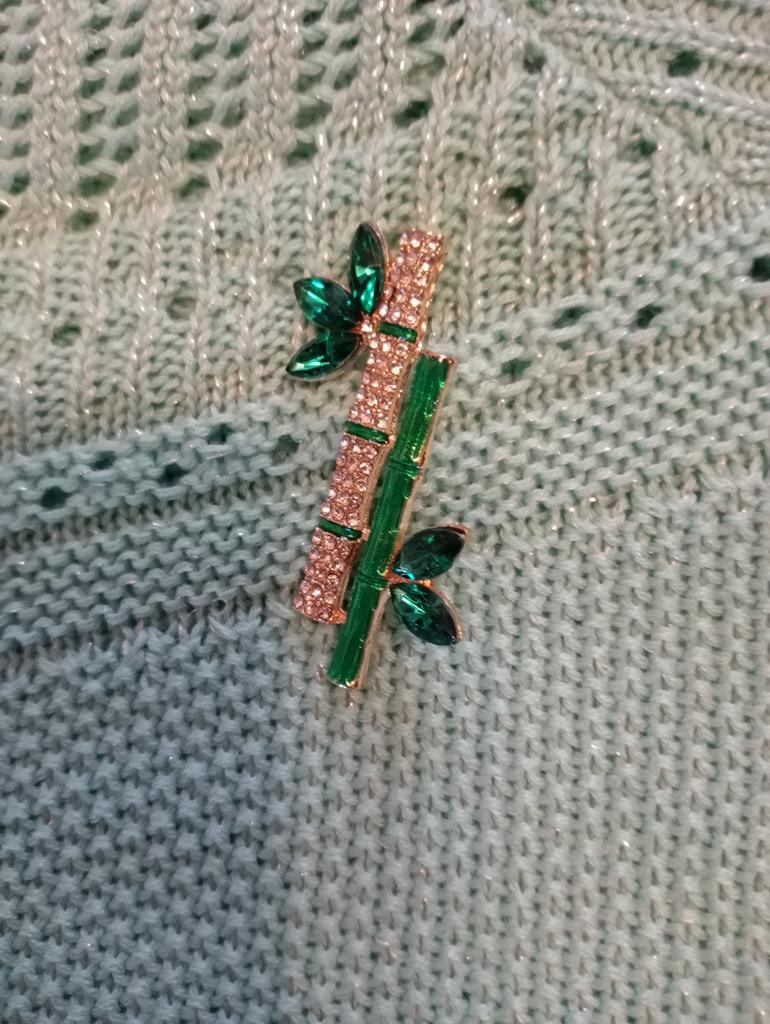Very cool delicate brooch. Unfortunately, the camera shows a turquoise color, but in reality it is a rich green. Arrived quickly, made with high quality. I recommend