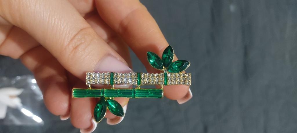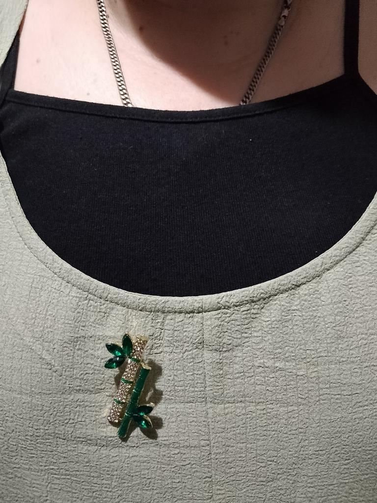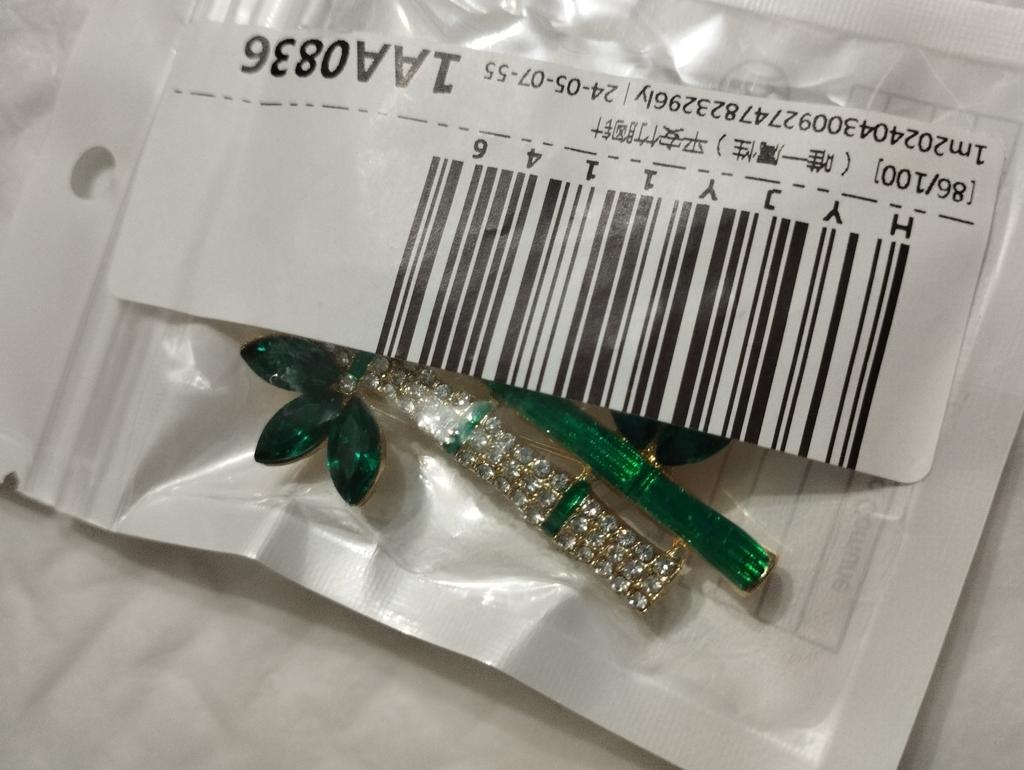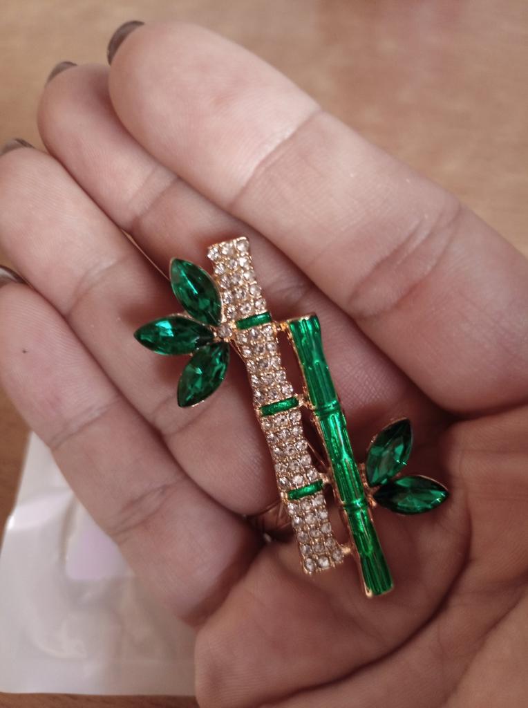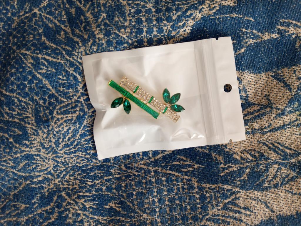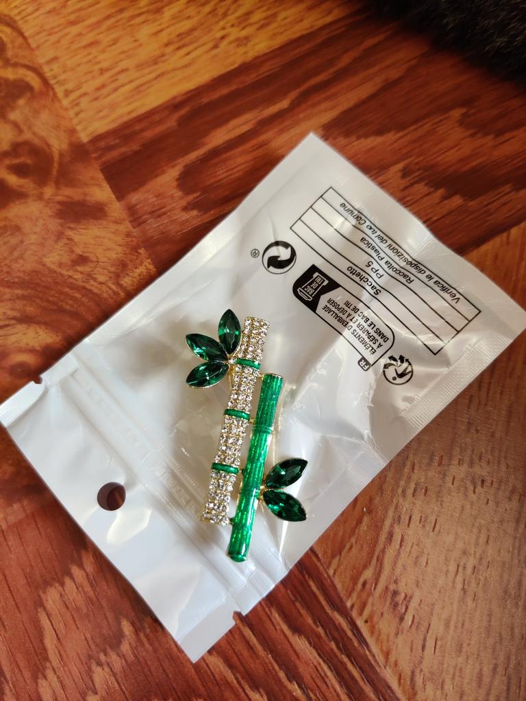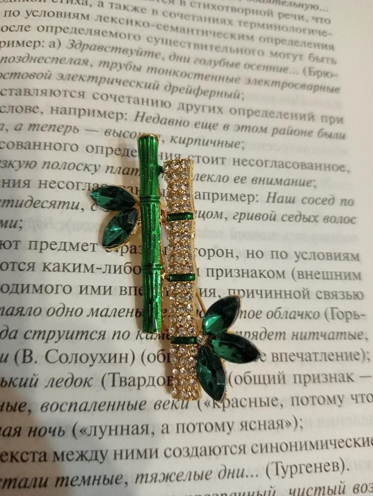 Very cool delicate brooch. Unfortunately, the camera shows a turquoise color, but in reality it is a rich green. Arrived quickly, made with high quality. I recommend