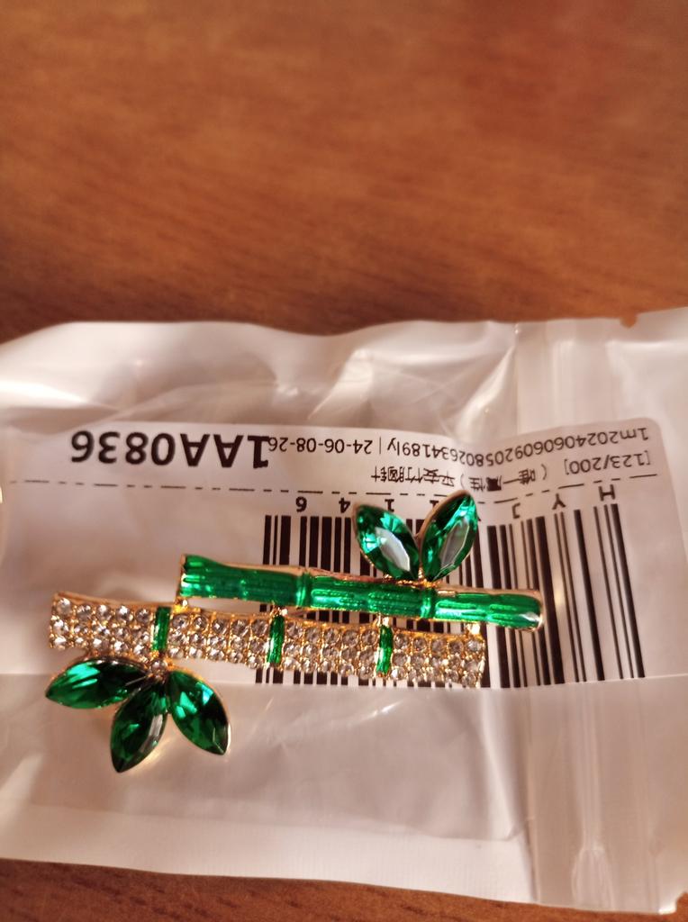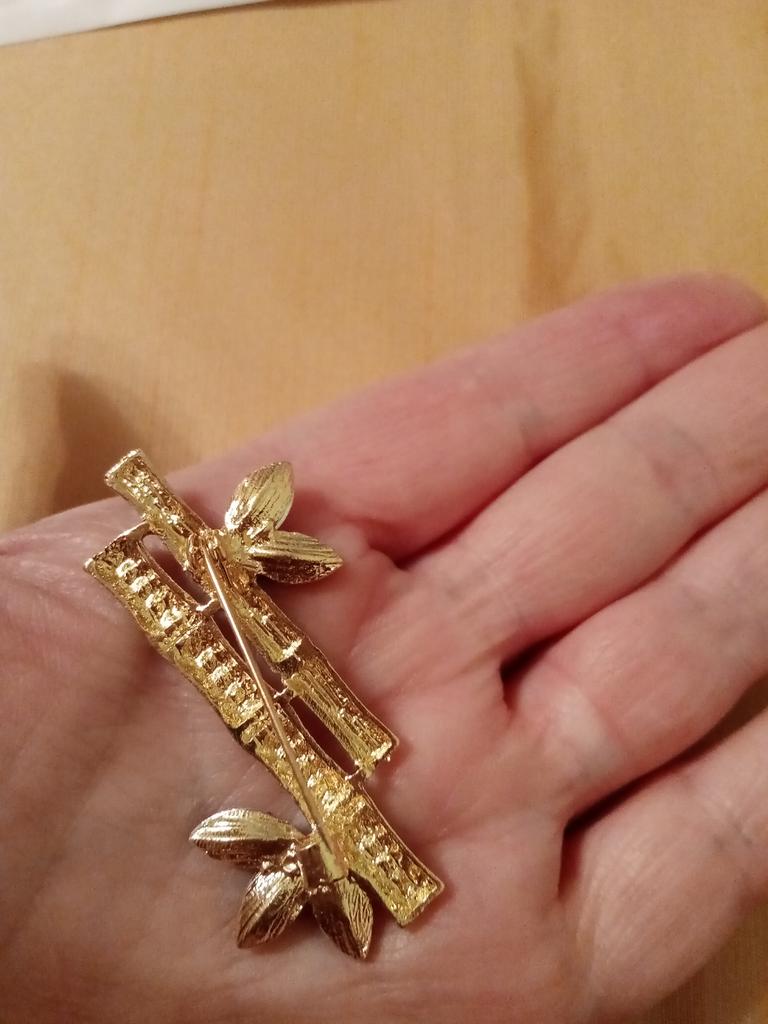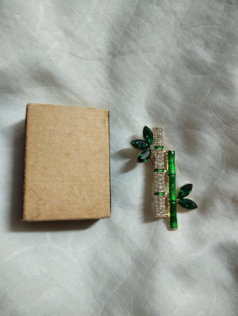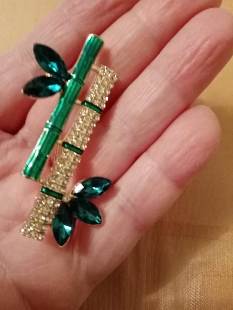 Beautiful brooch in the form of a bamboo branch, delivered in 2 weeks. Cool, will liven up a black jacket or sweater. Thank you.