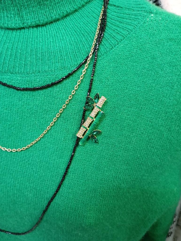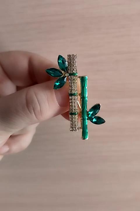 Elegant Retro Green Plant Bamboo Shape Brooch Pin For Women Collar Accessories