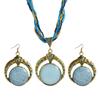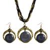 2Pcs/Set Bohemian Unique Carved Round Earrings Necklace Set Multilayer Beads Chain Pendant Necklace Hook Earrings Jewelry Accessories