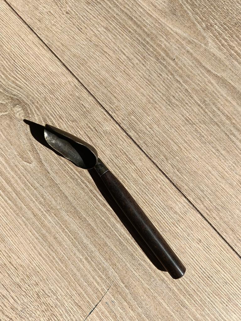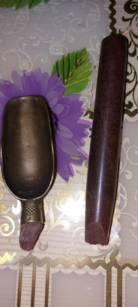 It is stated that it is a wooden spoon, but it doesn't look like it, it is most likely an ebonite material, its color ranges from dark brown to black, it is well-suited for processing, it is used as a substitute for expensive materials: ebony, ivory, tortoise shell. Then why lie that it is wooden.