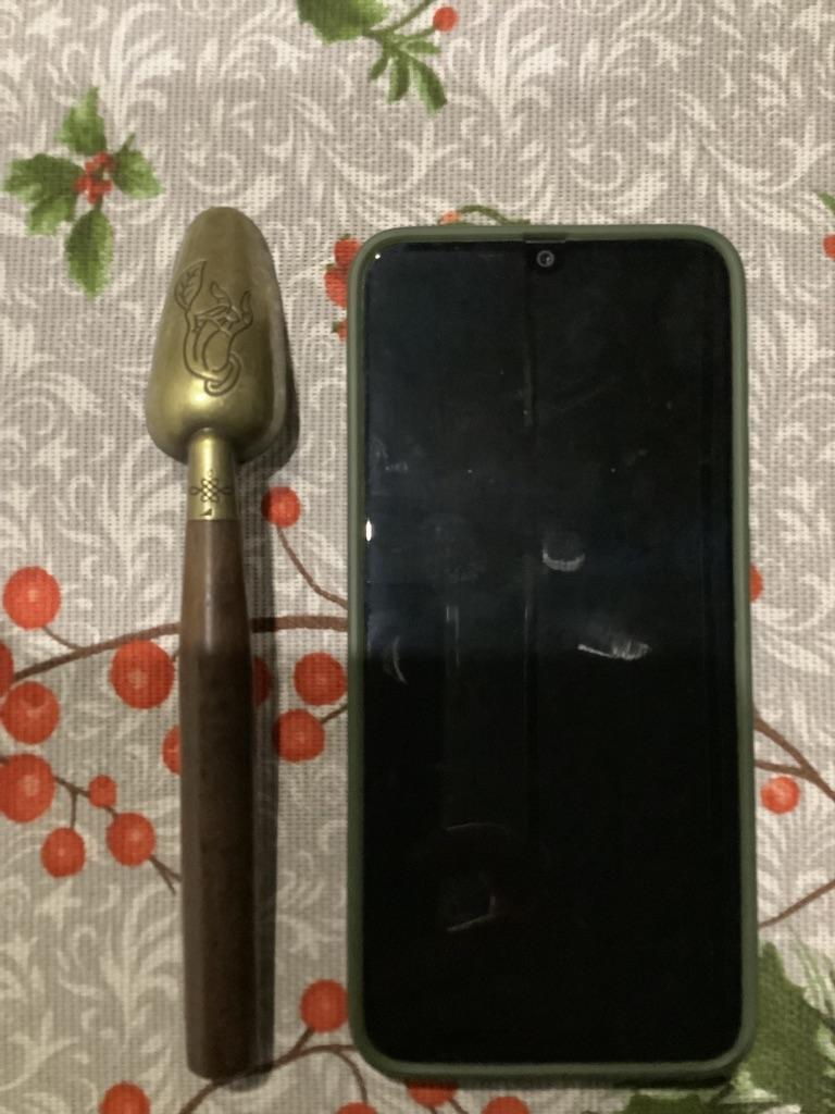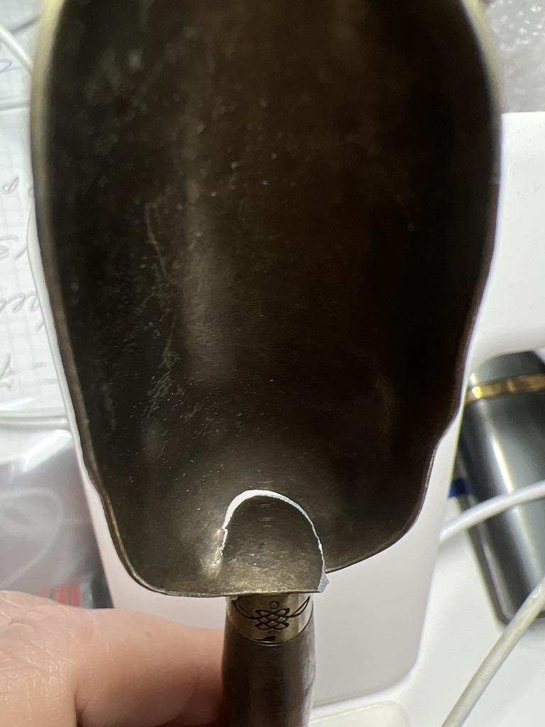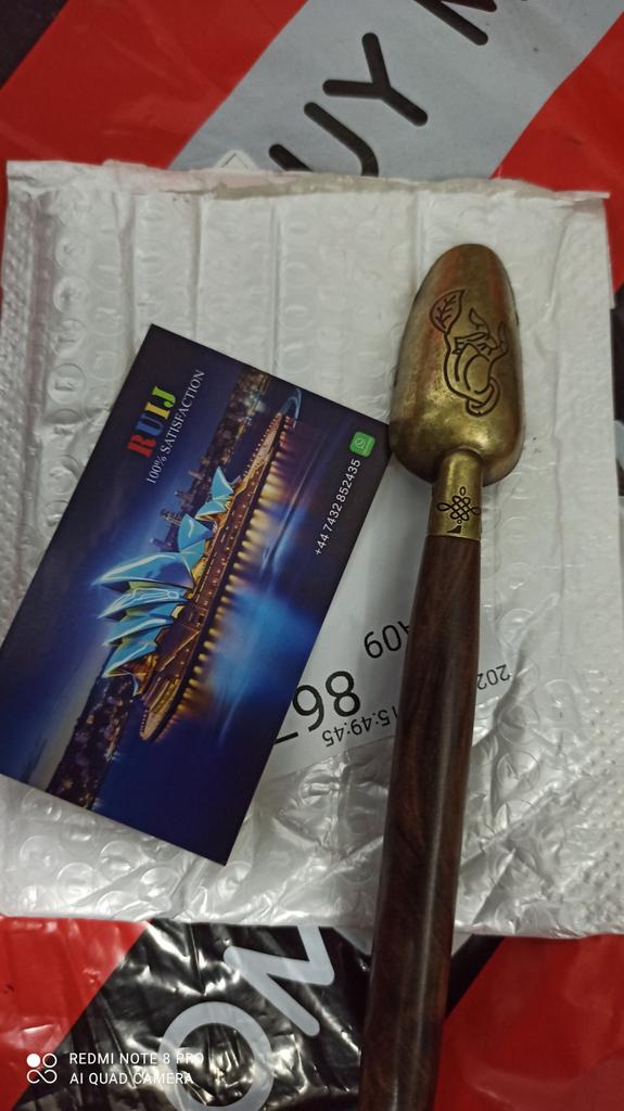 Very nice spoon, heavy. But the handle is not wooden, deception again😔