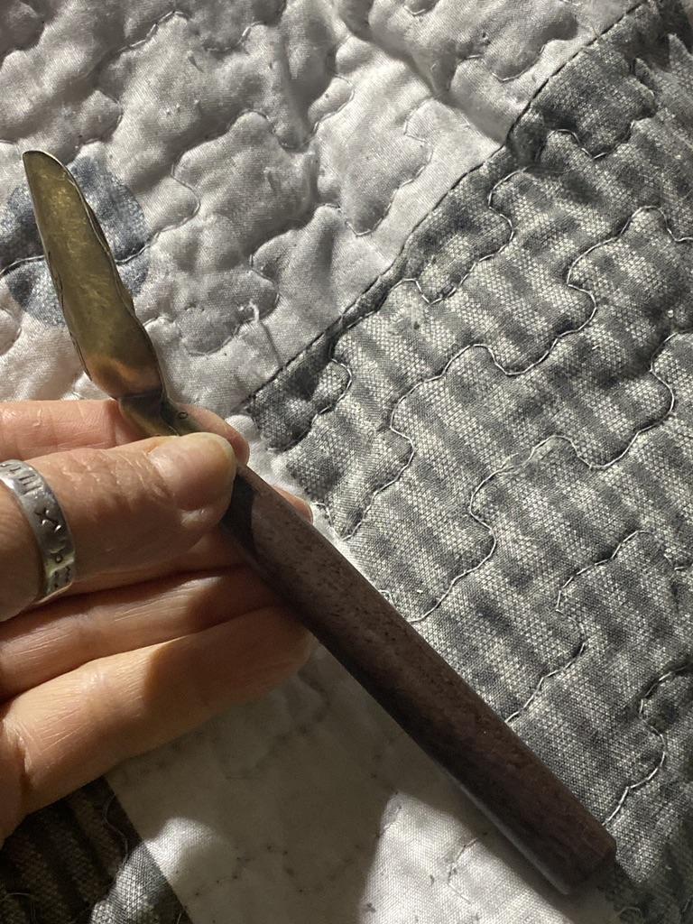 A good tea spoon, antique. The handle is bent, which makes it easy to get tea out of a bag or jar without spilling it. I love such things in the kitchen.