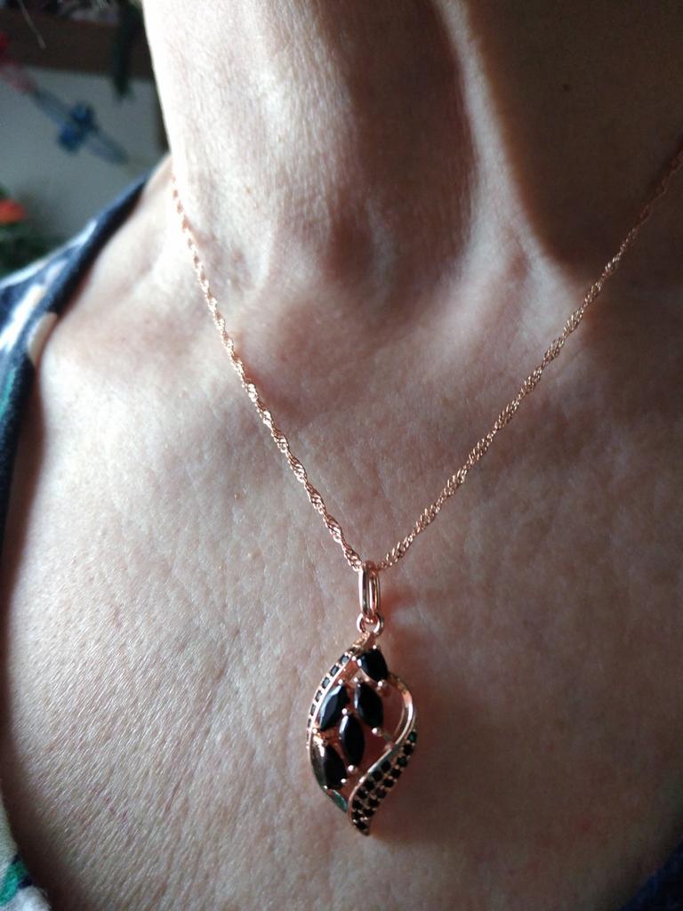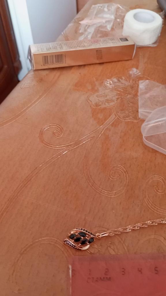 I was pleased with the quality of the pendant, the stones were glued beautifully and securely (!). The size is elegant. The chain is only 49 cm including the extension. The jewelry has the color of noble gold.