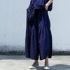 Johnature Women Vintage Cotton Linen Wide Leg Pants Elastic Waist Loose Summer Trouser Patchwork Ankle-length Pants