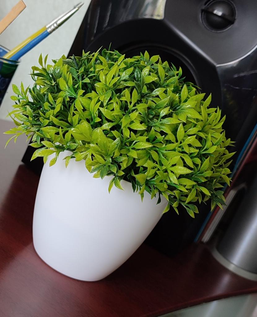 The product arrived too crushed 🥺, that's what I was waiting for. The pot is thin, kind of translucent. Very light, something shakes in the middle. The leaves are crumpled on three sides🥺. In addition, the leaf is not glued, but planted on ordinary white foam and falls out of the pond. The description states that the diameter of the crown is 14 cm, and the diameter of the pond is 7.5 cm. In fact, it is 13 and 7 cm, respectively 🥺 I planted it on the glue myself, straightened the leaves by hand, the mood is a little spoiled. Ps I contacted the support service, they promised to cheer me up, so I returned all the stars. Thank you 🙏
