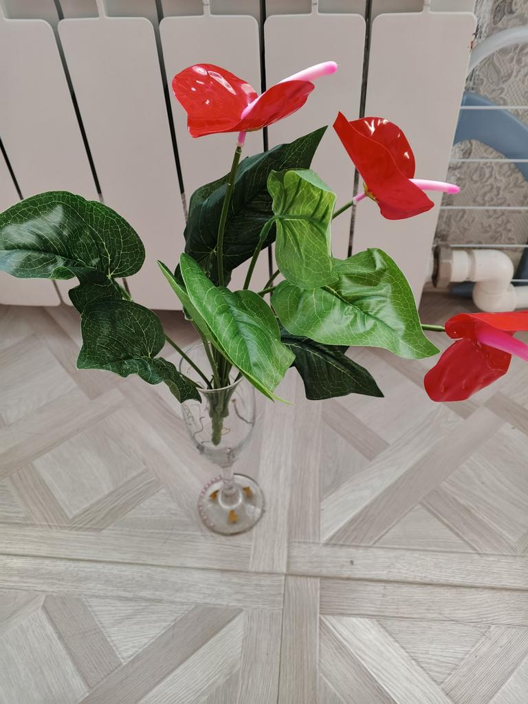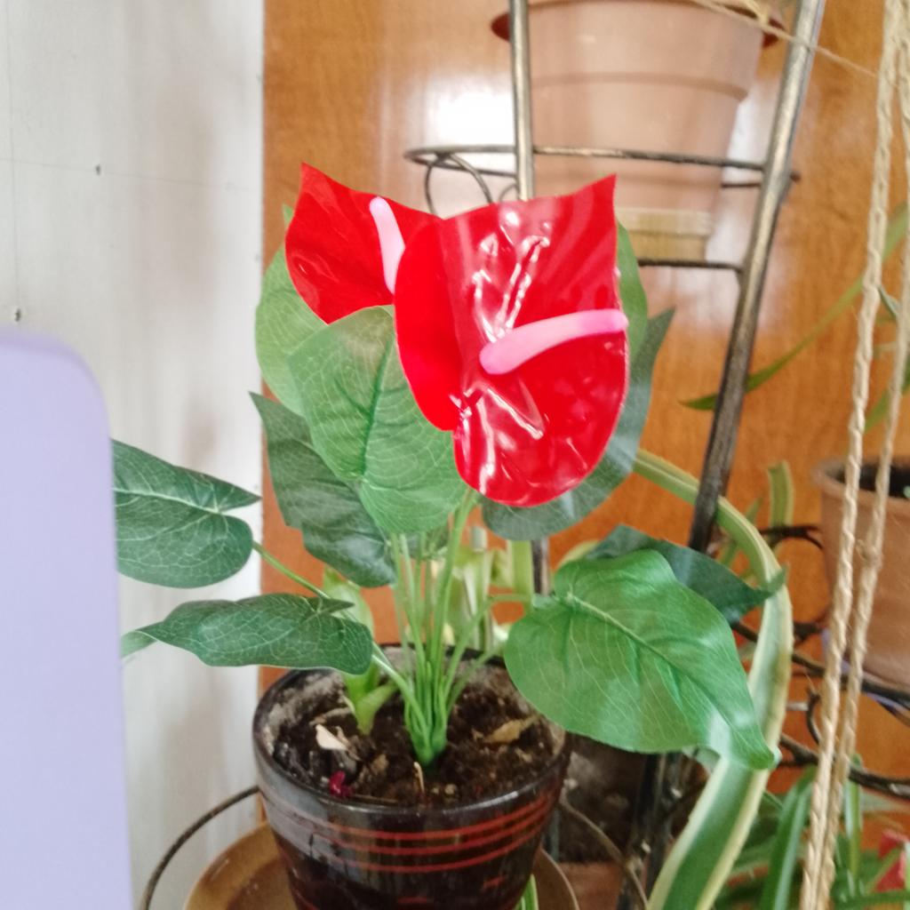 1 Pc/5 Flowers + 7 Leaves Faux Anthurium Plant Lifelike Lifelike Plastic Anthurium Artificial Plants Decoration for Stores
