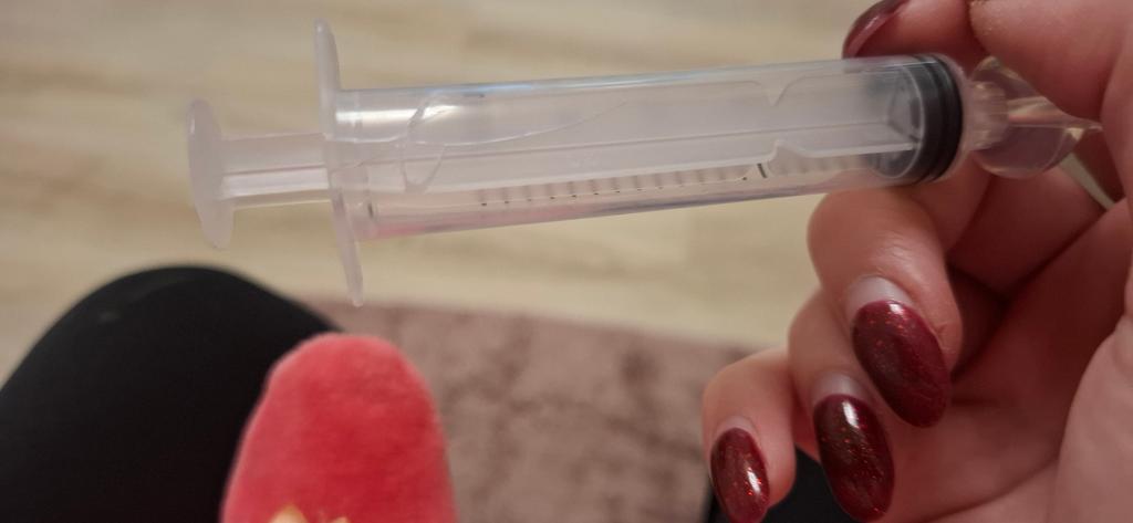 The syringe was broken, but it can be replaced with another one. The rubber is soft