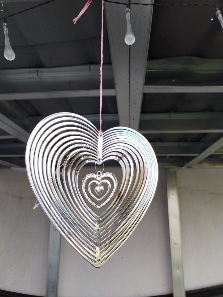 Beautiful light green heart. In the summer I will hang it to scare away birds.