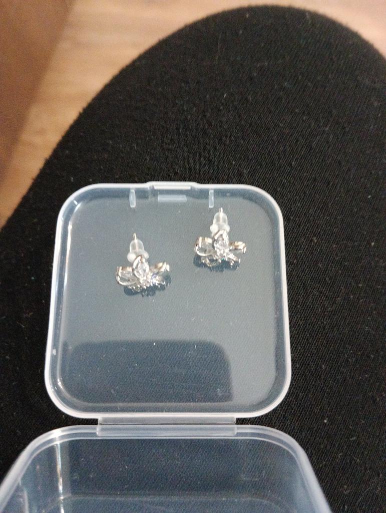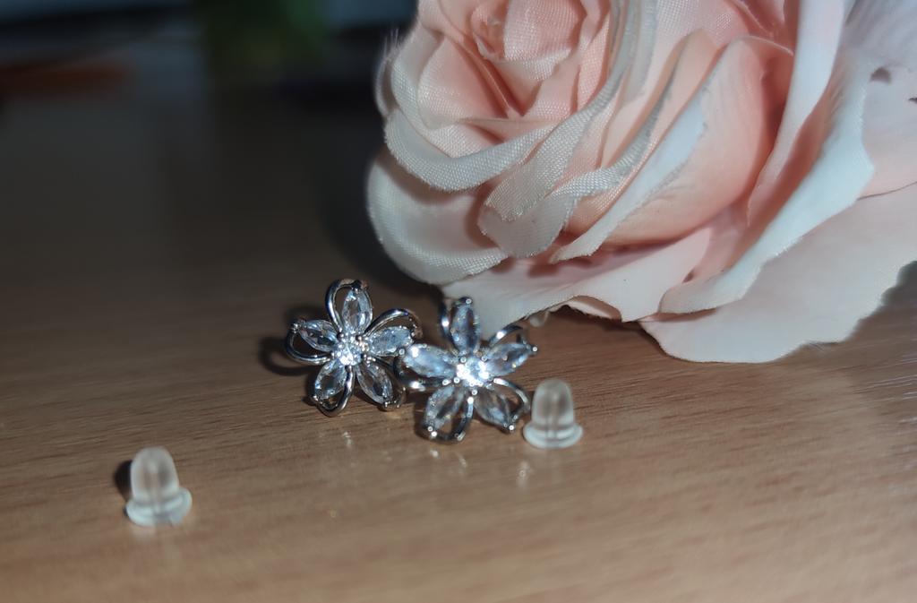 Wonderful earrings, they shine beautifully)) Silicone clasps, reliable in my opinion, +1 spare clasp. Delivery is less than a month.