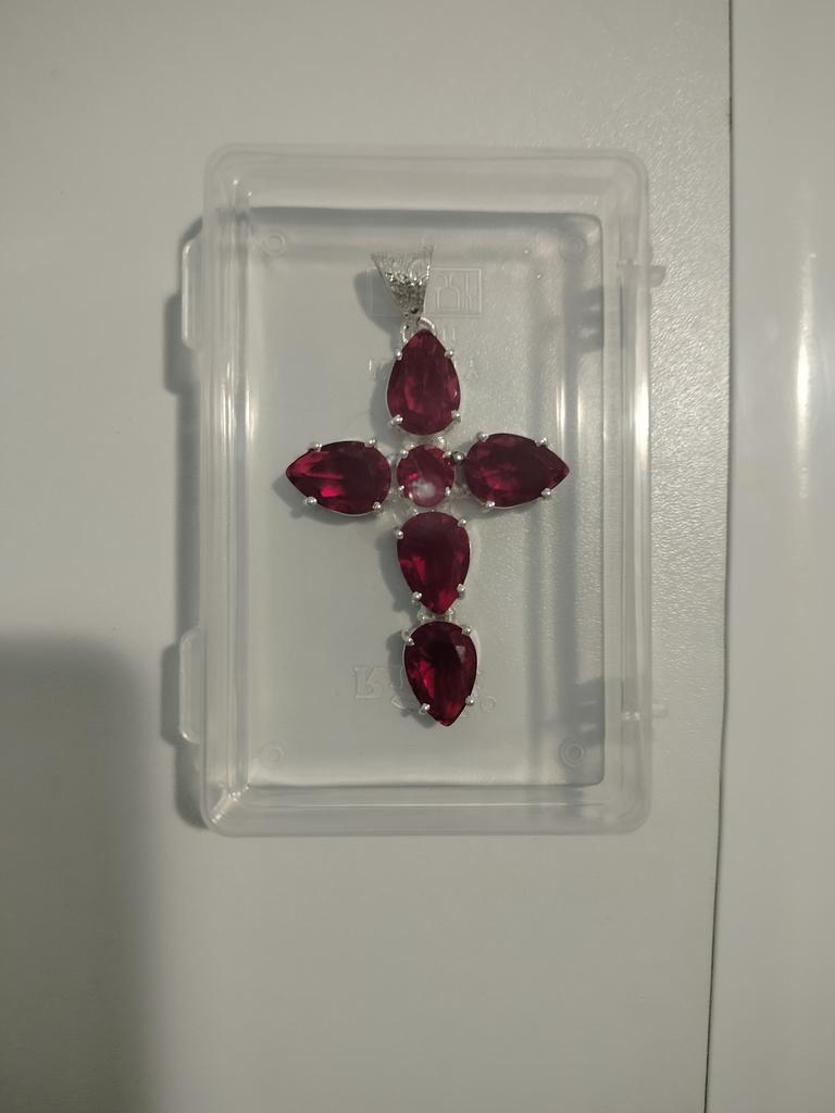I received a Mozambique garnet cross. A beautiful decoration, the stones shine, it is made carefully, the length of the decoration is 6 cm, the width is almost 4 cm. It has a silver hallmark. It is packed in a plastic box and a bag. It is well packed, everything is intact. Thank you!