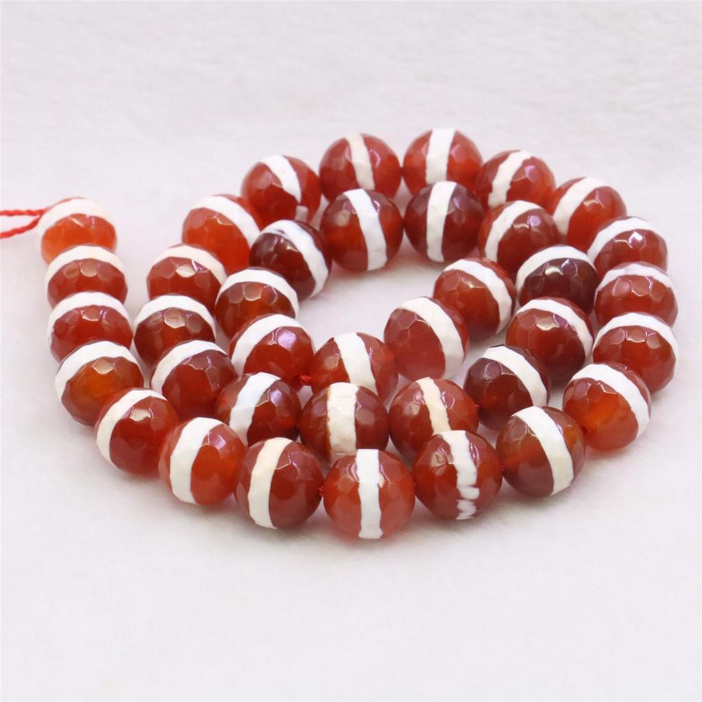 10mm Round Faceted Red Horizontal White Bar Agates Onyx Loose Beads Women Girls DIY Accessory Jewelry Making Design