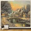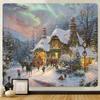 New Year Christmas Snow Scene Oil Painting Printing Pattern Tapestry Home Living Room Bedroom Wall Decoration Tapestry