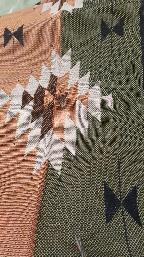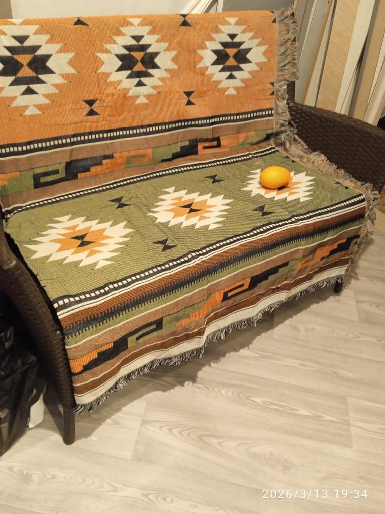It looks like natural fabrics, does not fall apart, is neat and intact. Nice bed/sofa cover. The size is as stated.
