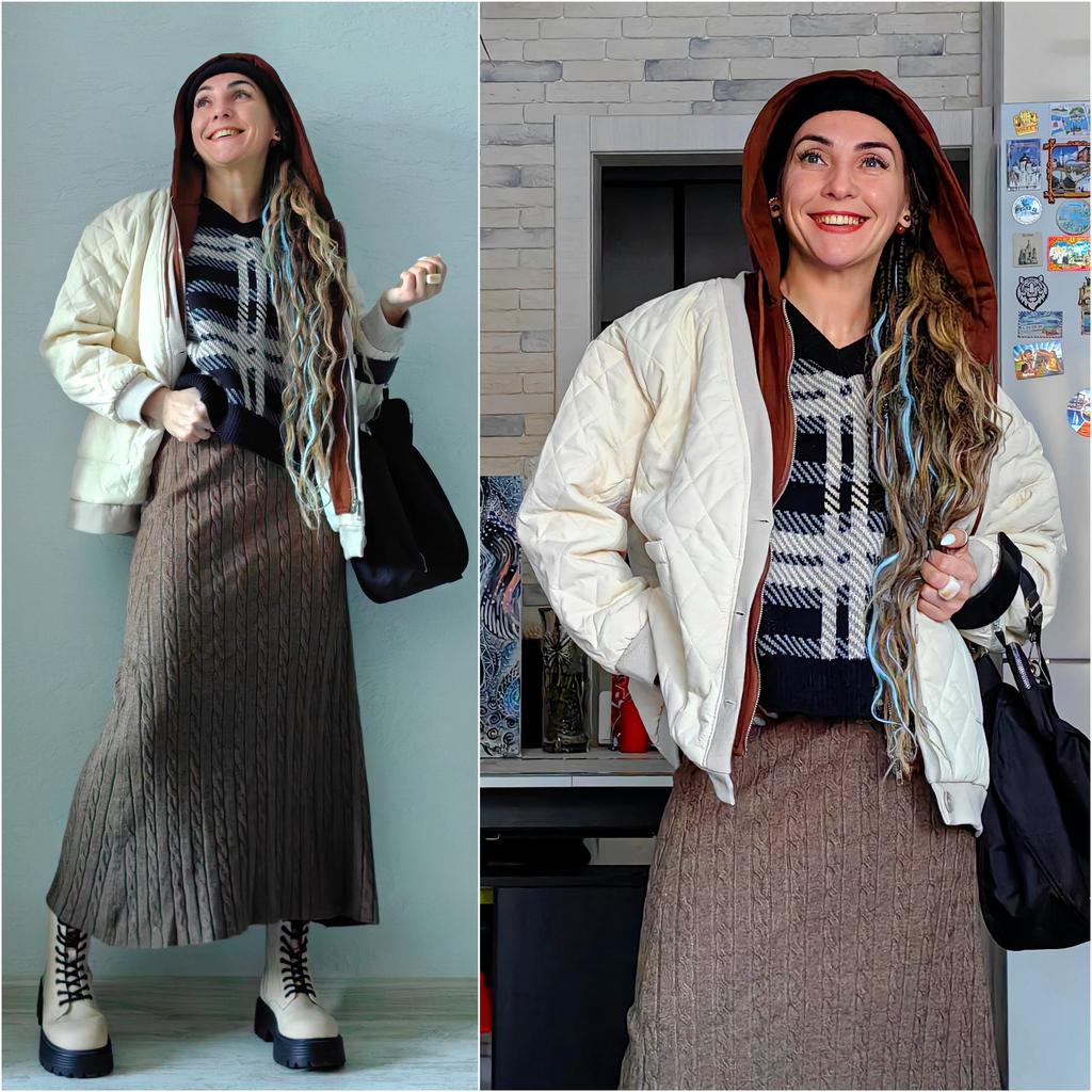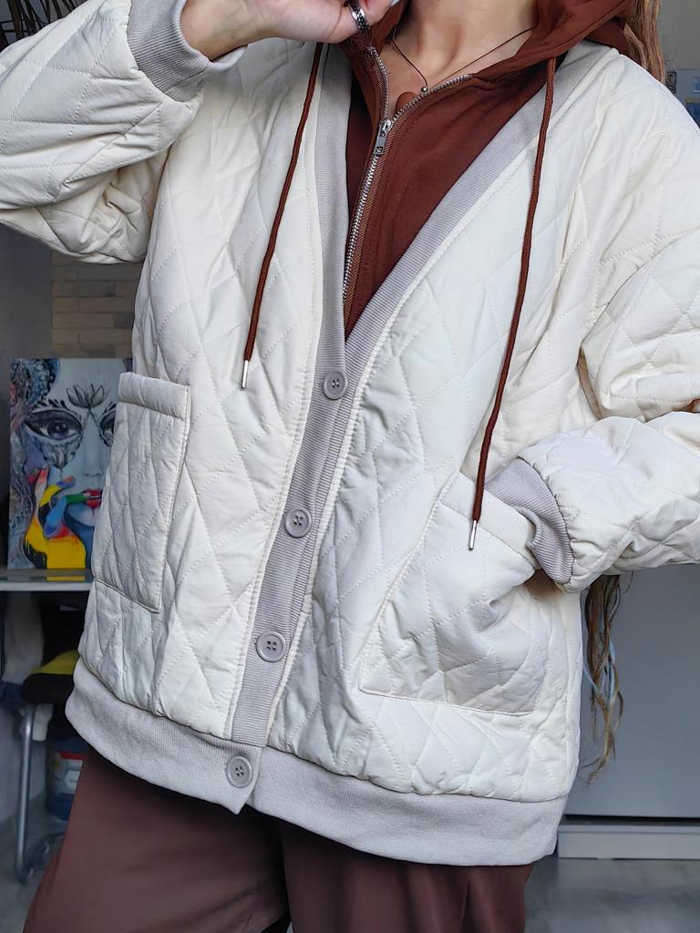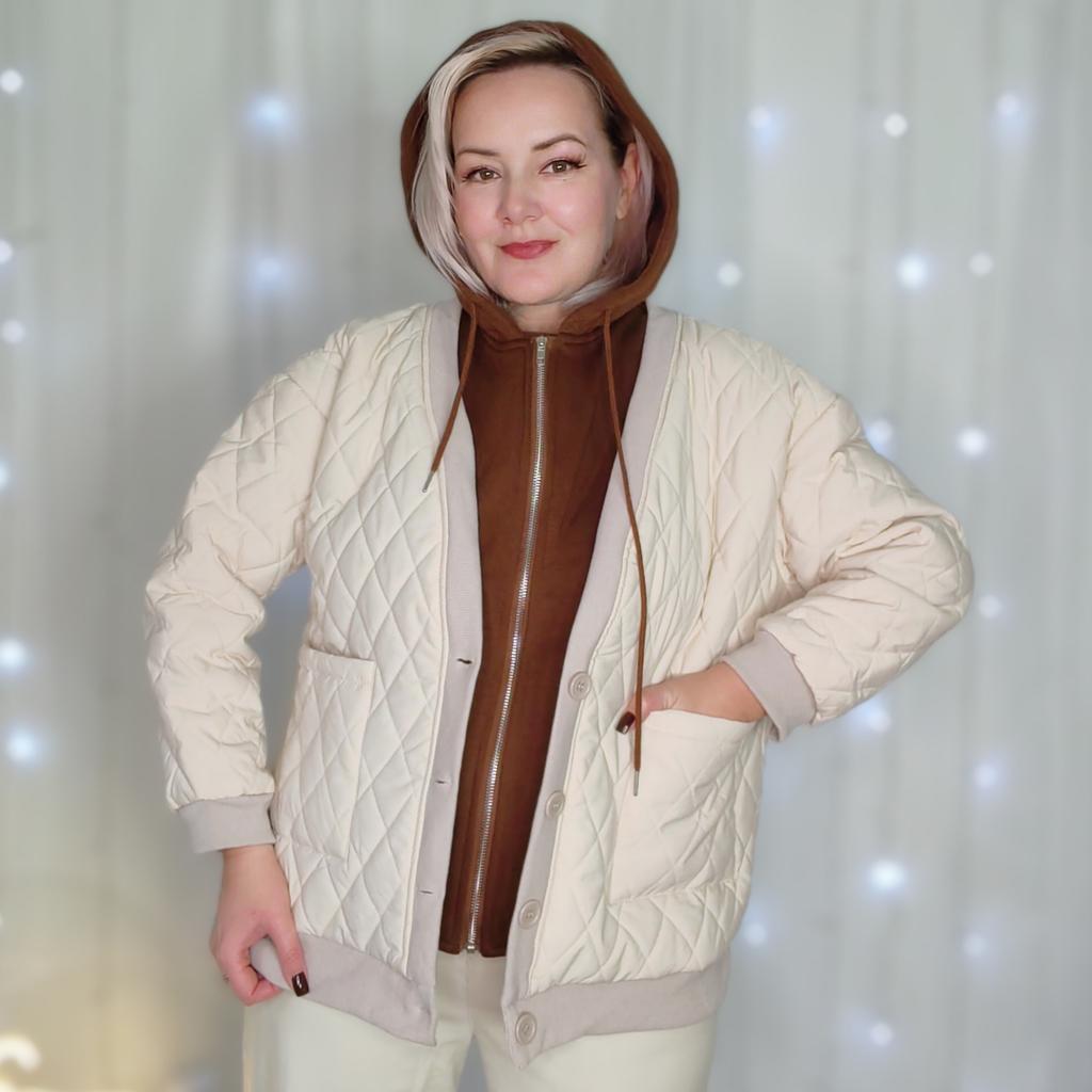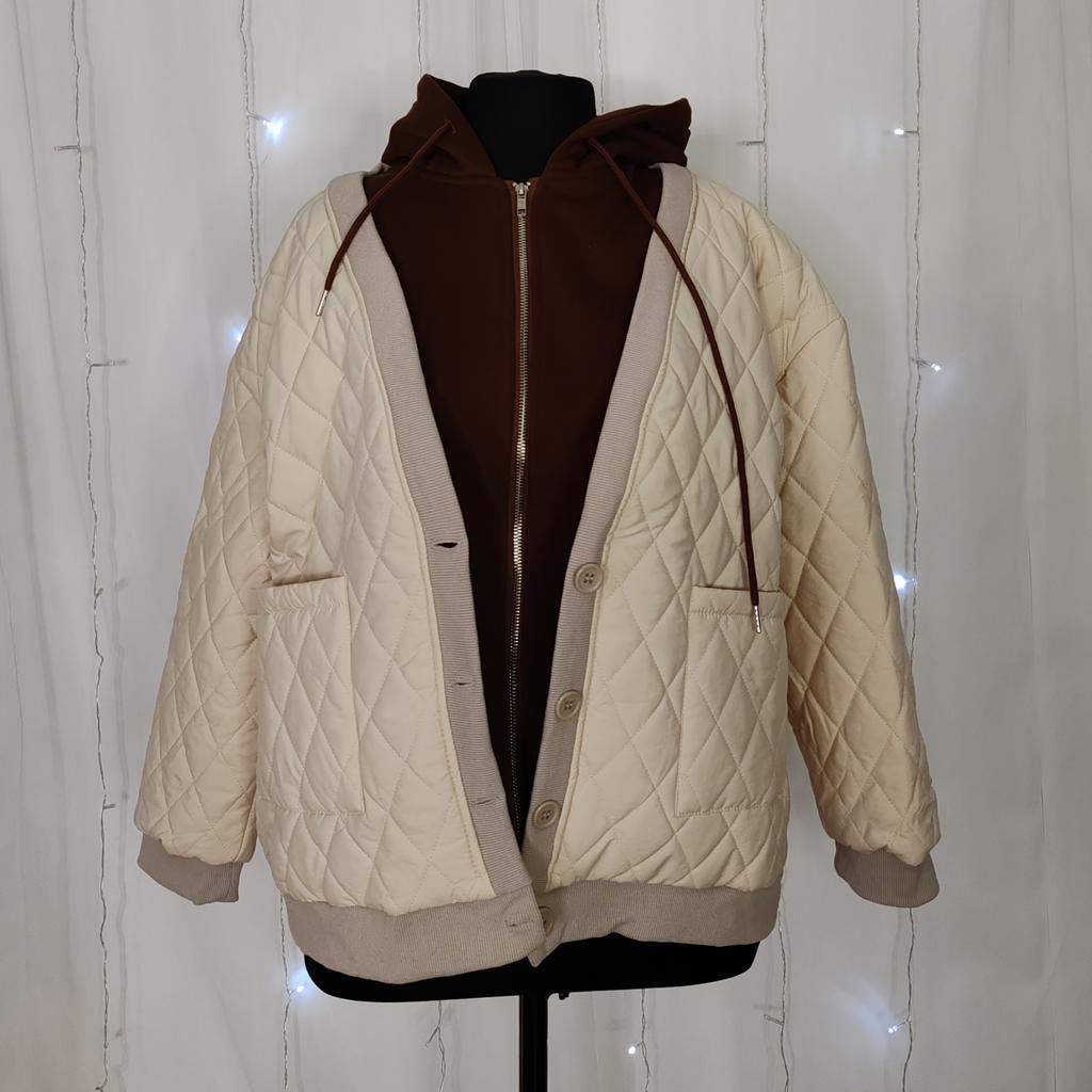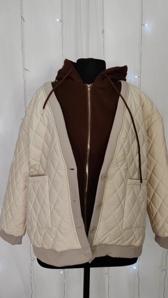 New Arrival! Hooded Thickened Cotton Coat with Faux Two-piece Design for Women Fashionable Hepburn Style High-end Diamond Stitching and Check Pattern