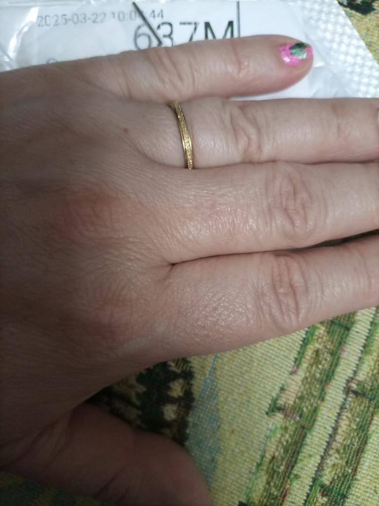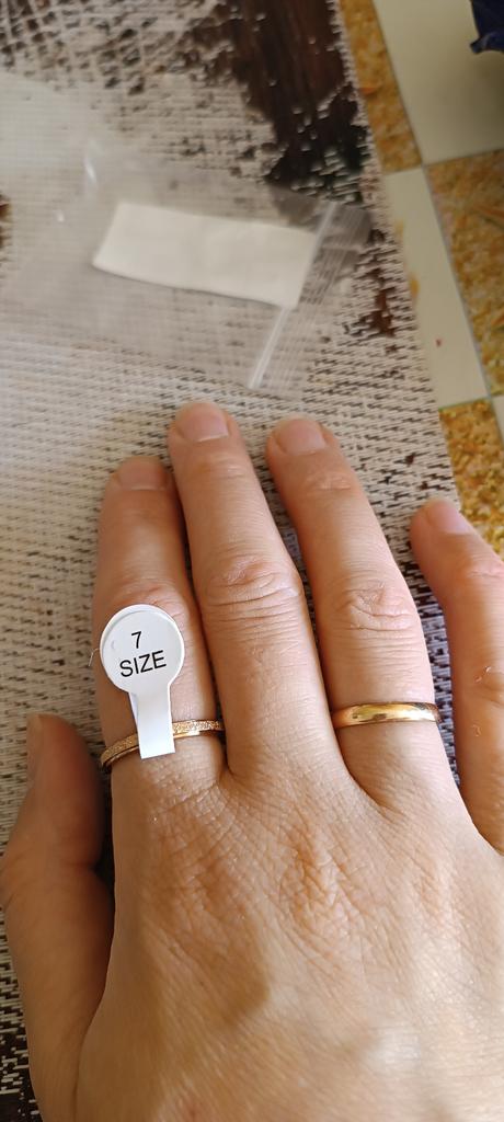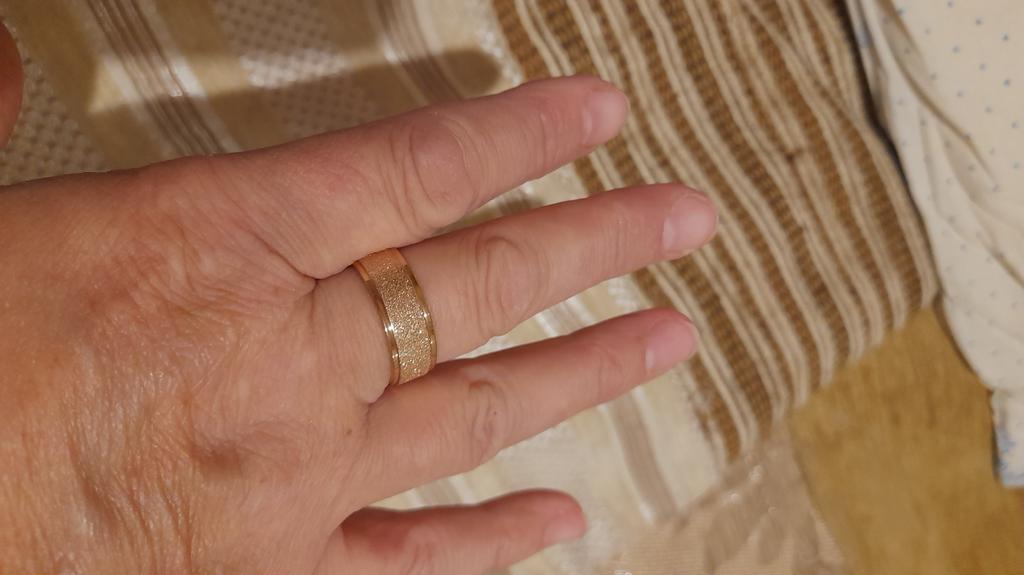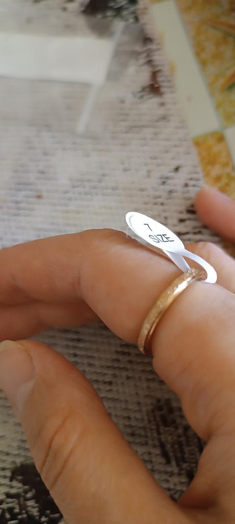 Beautiful ring 💍, no different from gold, I like this thickness of the ring better than the thinner 8 times fit me perfectly. Thank you very much.