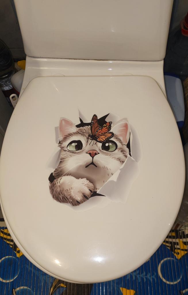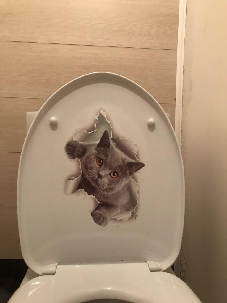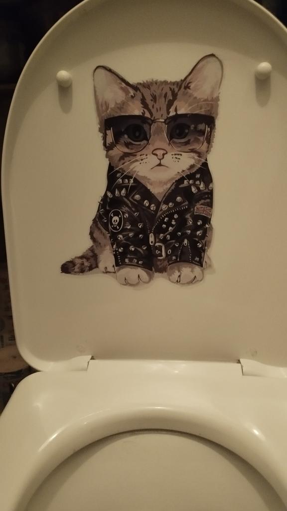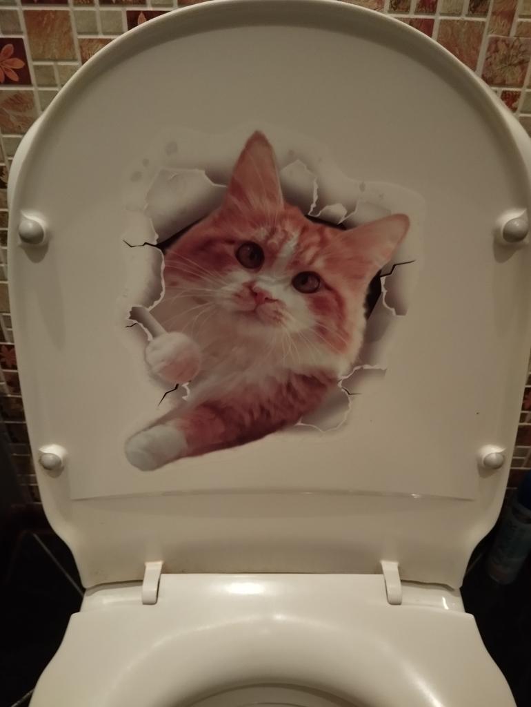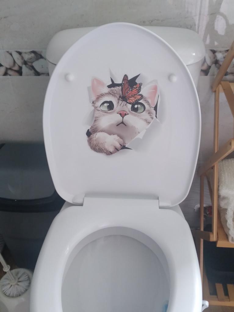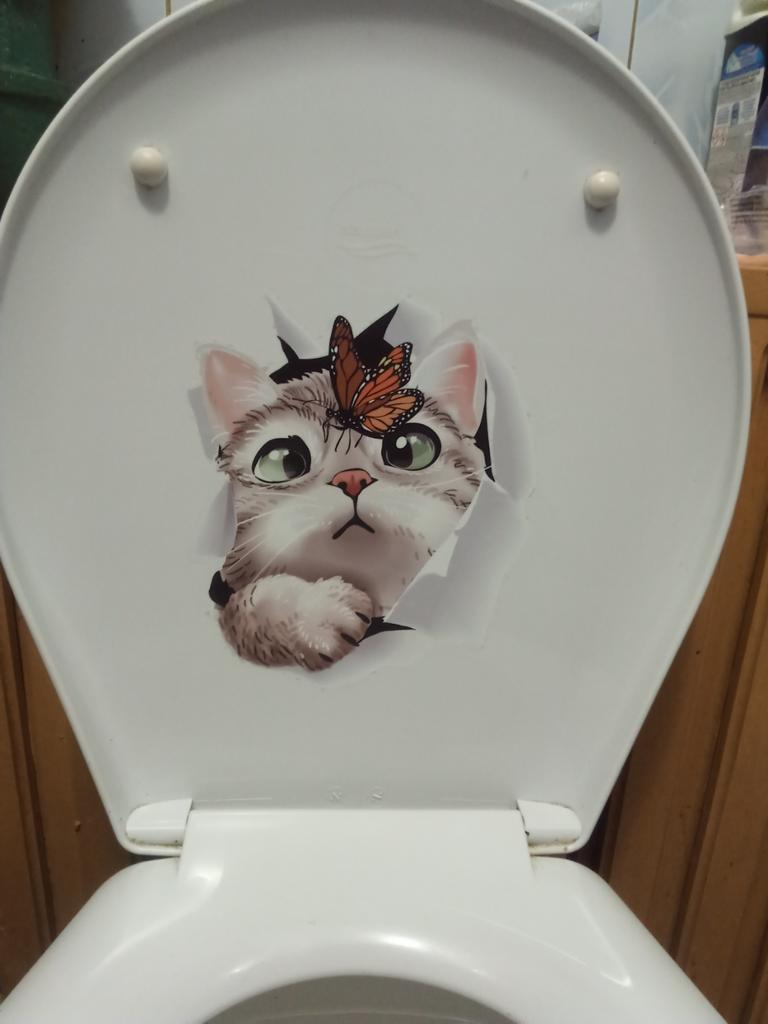 The sticker is great, I couldn't bring myself to stick it on the toilet, I stuck it on the wall in the kitchen. It's exactly the same as my cat.
