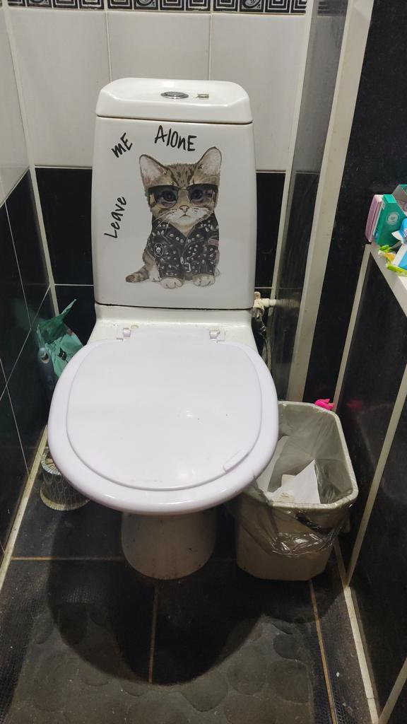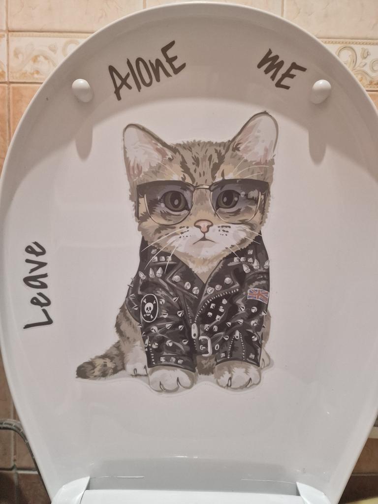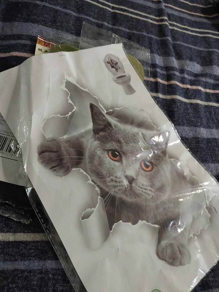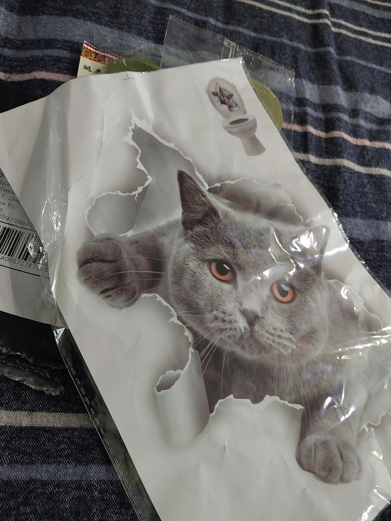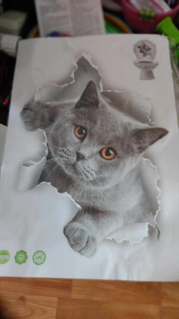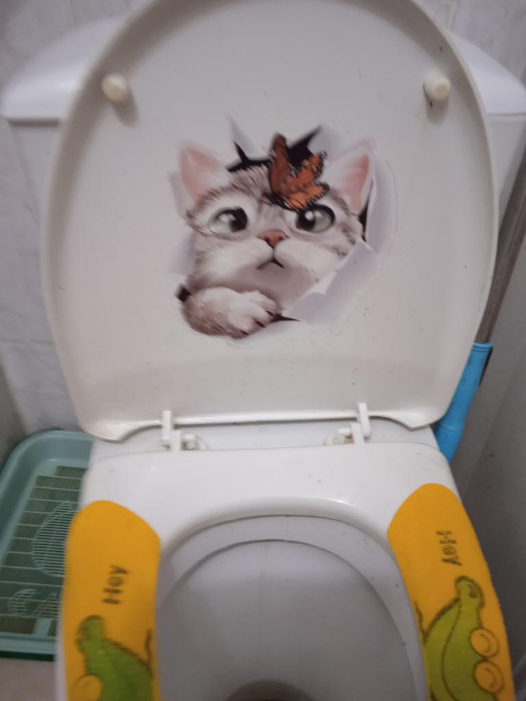 The sticker is great, I couldn't bring myself to stick it on the toilet, I stuck it on the wall in the kitchen. It's exactly the same as my cat.