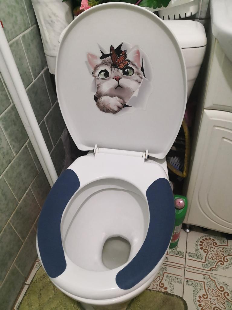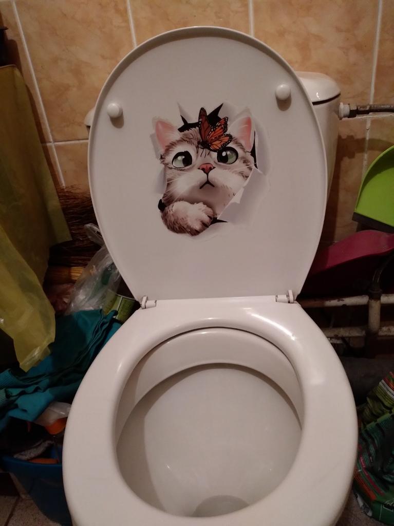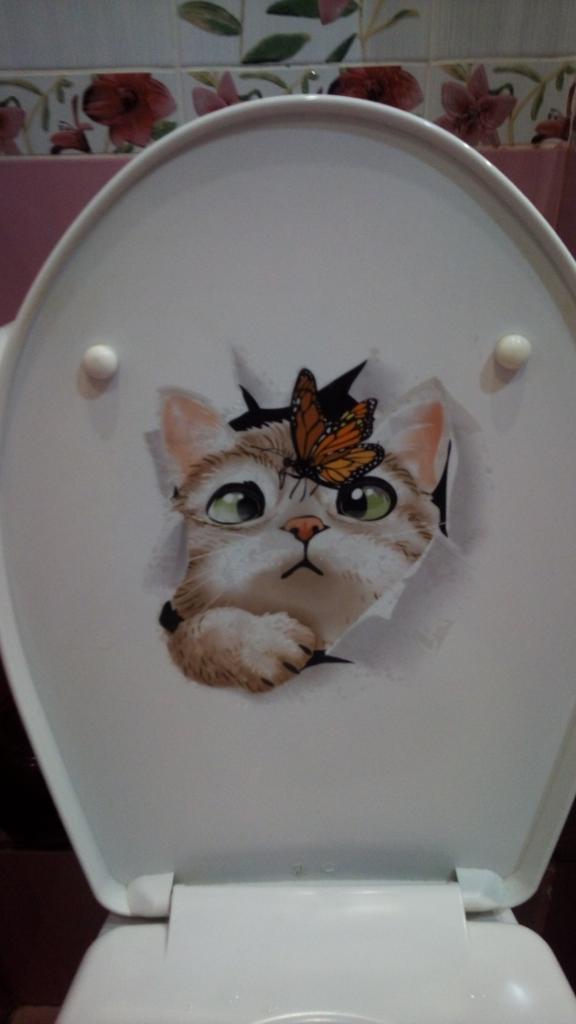The second day I get scared - the cat is in the toilet! The sticker is easy to use. Bravo to the sales people!