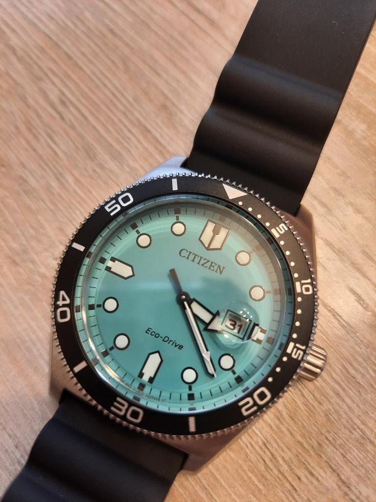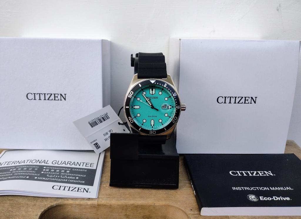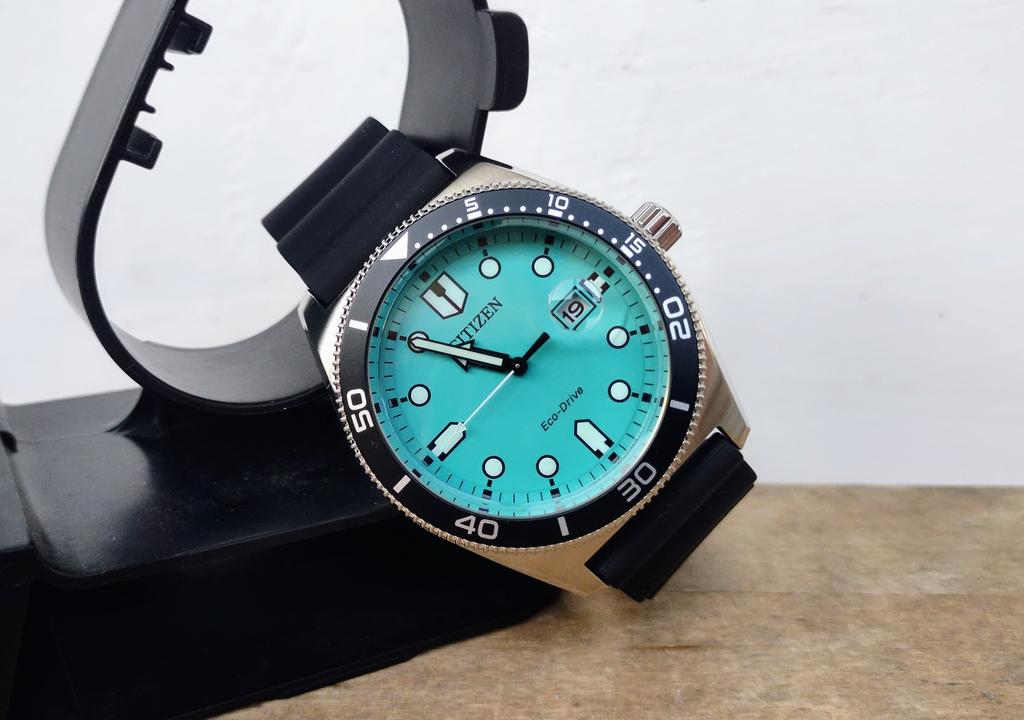 Citizen Eco-Drive Rubber Strap Turquoise Dial AW1760-14X 100M Mens Watch