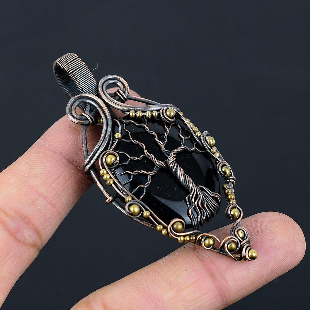 Tree Of Life Black Onyx Gemstone Pure Copper Wire Wrapped Handmade Pendant Jewelry
