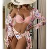 3 Pieces Bikini Sets Women Summer Sexy Floral Twist Low Waist Bikinis Cover Up Swimsuit Female Brazilian Beachwear Bathing Suit WBL