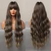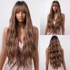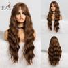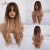 EASIHAIR Long Wavy Black To Orange Ombre Synthetic Wigs Amber Natural Wigs with Bangs Wedding Princess Hairstyles Heat Resistant