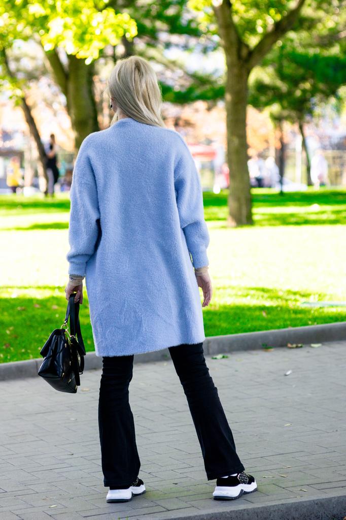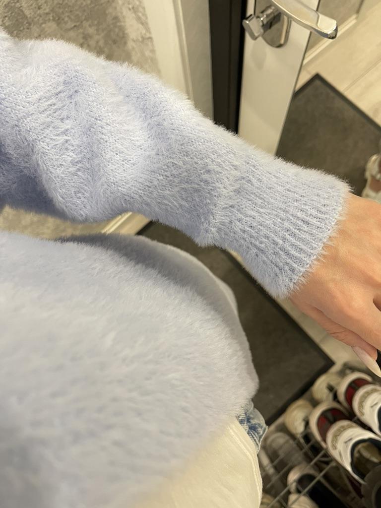 A beautiful, quite thick and fluffy cardigan. But the color is a little paler than in the picture