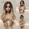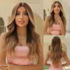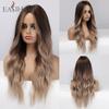 EASIHAIR Long Honey Brown Ombre Highlight Synthetic Wigs for Women Mixed Brown Wavy Natural Wigs Middle Part Cosplay Wigs Heat Resistant