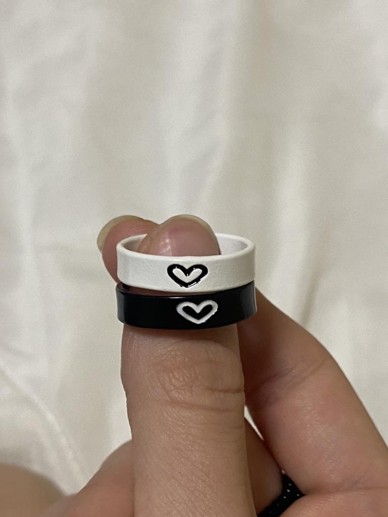 SET OF RINGS "YIN AND YANG" Cute set of rings. 🔸Set includes two rings: white and black. 🔸The white ring has a black heart engraved on it, and the black one has a white heart.. 🔸Rings fit size 18. 🔸Rings are made of metal alloy, strong, do not bend. Can be worn individually or in pairs.