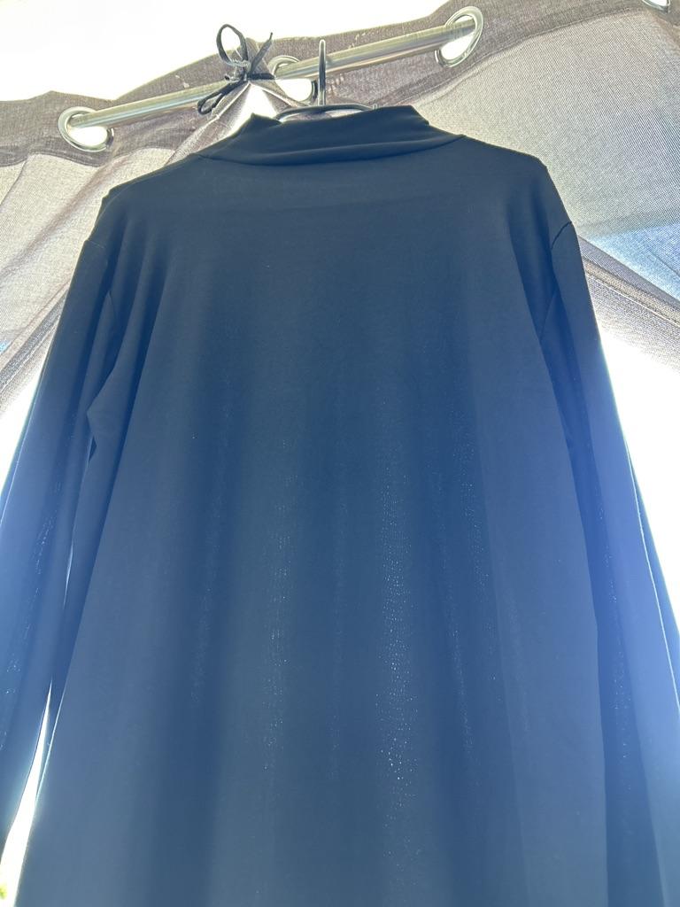 It's not a sweater, just a very thin undershirt, mostly polyester... I'm not unhappy either, but I would have preferred a sweater, but it's not a big deal in itself... It clings to the body, but it's an undershirt so you need to wear a real sweater over it... For the price, I won't complain... But for a sweater, I'll go to the store in the future to avoid bad surprises...