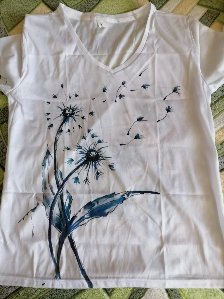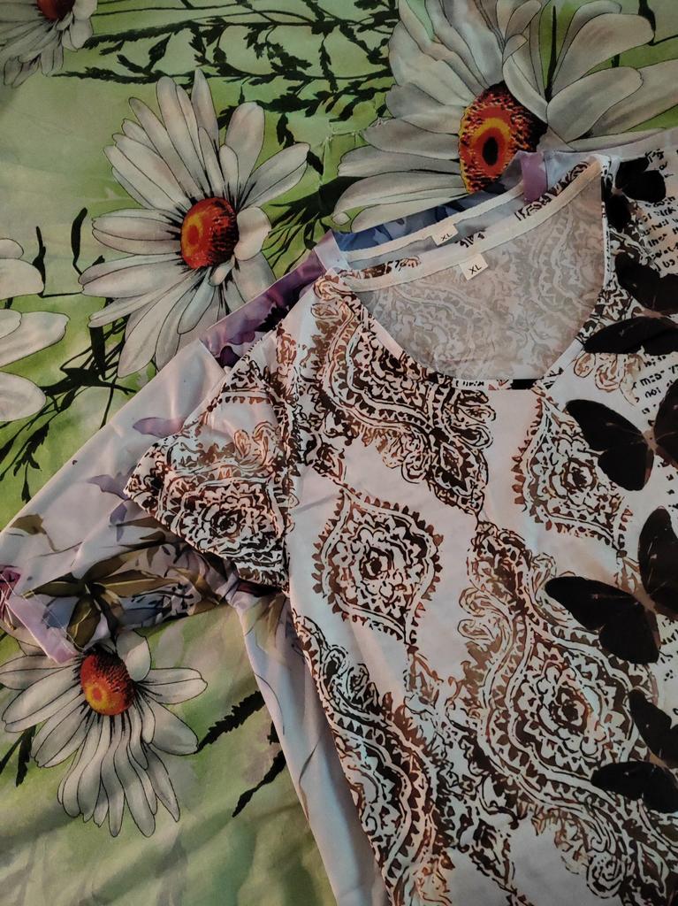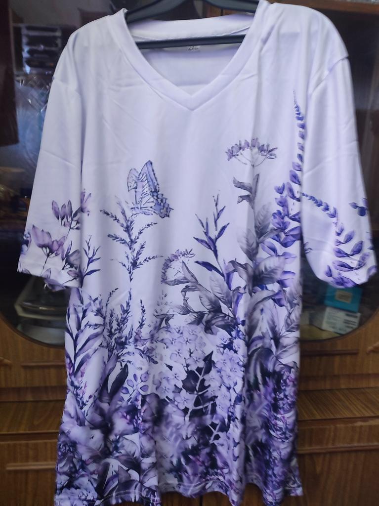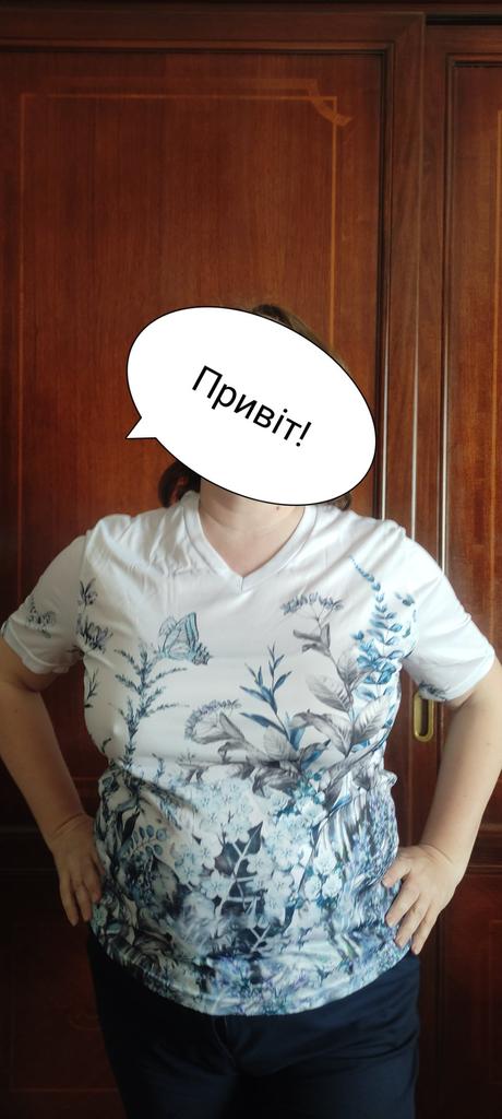 Synthetic T-shirt with a bright pattern, comfortable, practical, easy to wash in warm water, size 48
